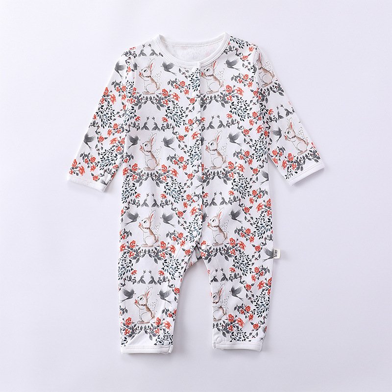 Kids Baby Boys Girls Casual Cute Tiny Flower Animals Print Long Sleeve Romper