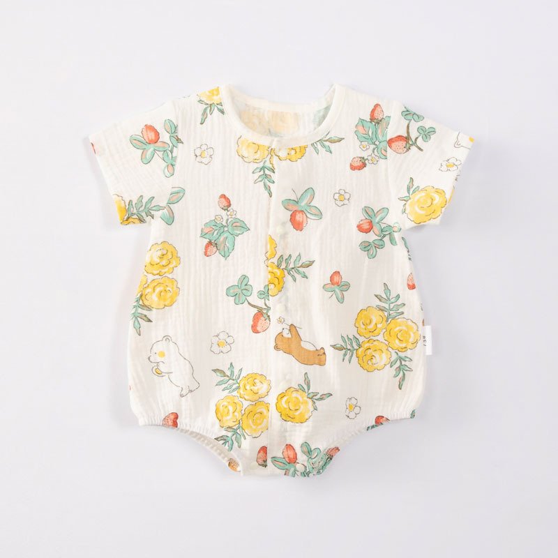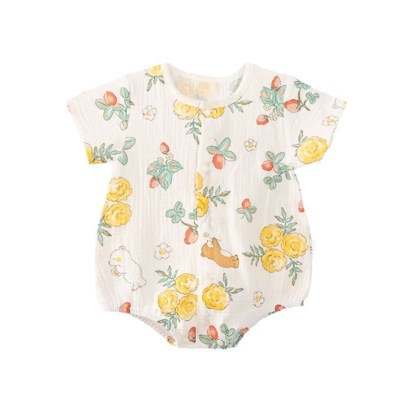 Kids Baby Boys Girls Casual Cute Tiny Flower Print Short Sleeve Romper