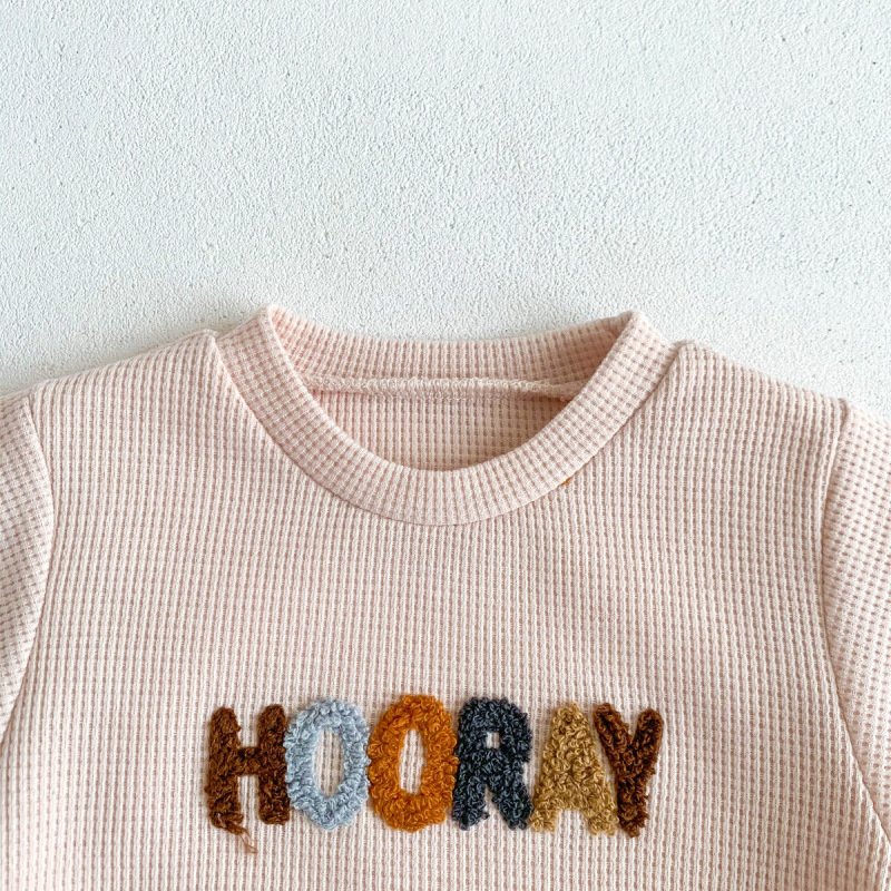 Kids Baby Boys Girls Casual Cute Waffle Letters Long Sleeve Sweatshirts Trousers Set