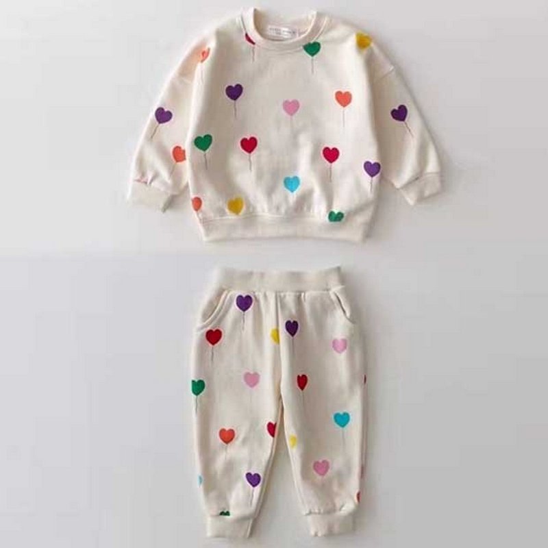 Kids Baby Boys Girls Casual Love Balloon Print Long Sleeve Round Neck Sweatshirts Trousers Set