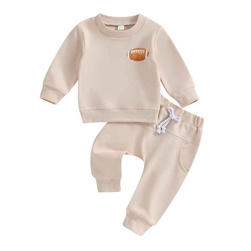 Kids Baby Boys Girls Casual Sports Rugby Print Long Sleeve Round Neck Sweatshirts Trousers Set