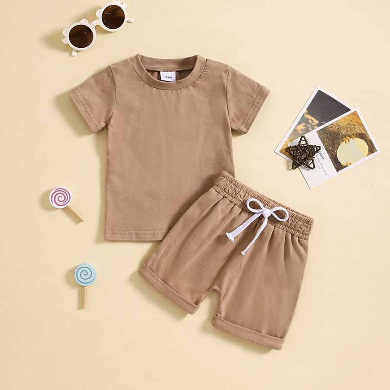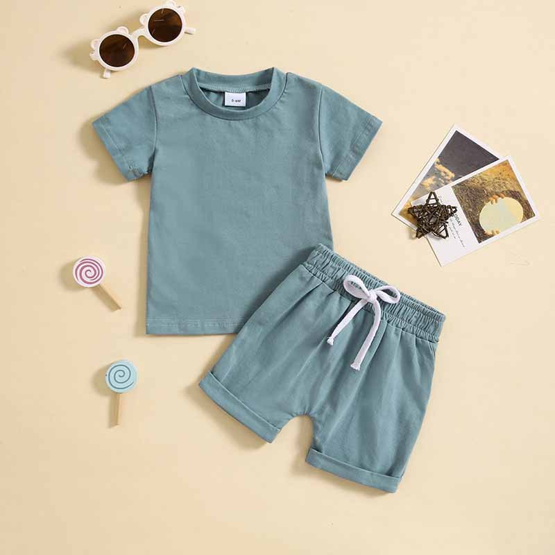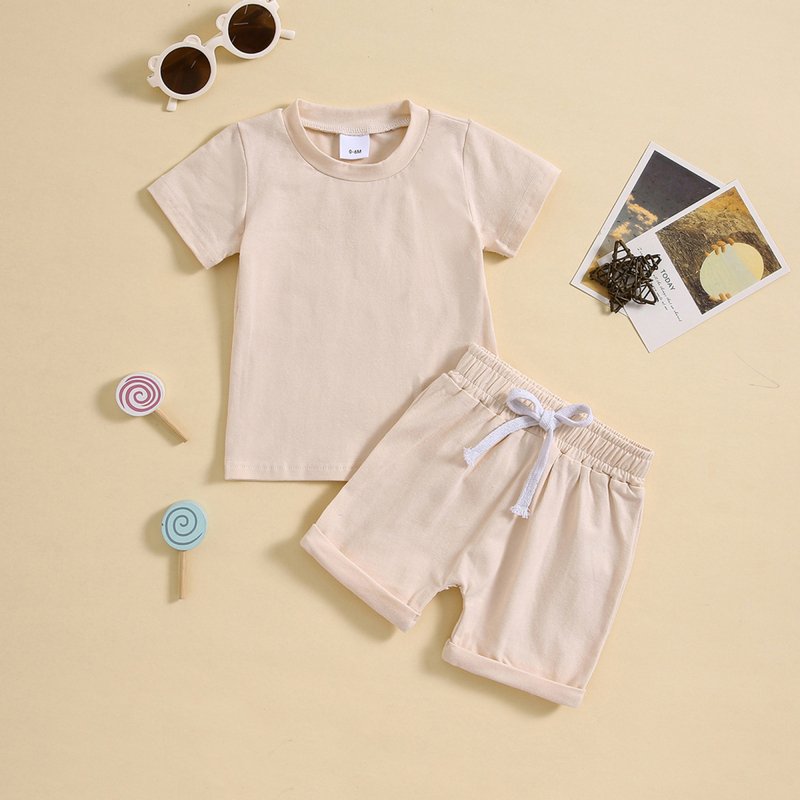 Kids Baby Boys Girls Casual Sports Solid Color Short Sleeve Round Neck T-Shirt Shorts Set