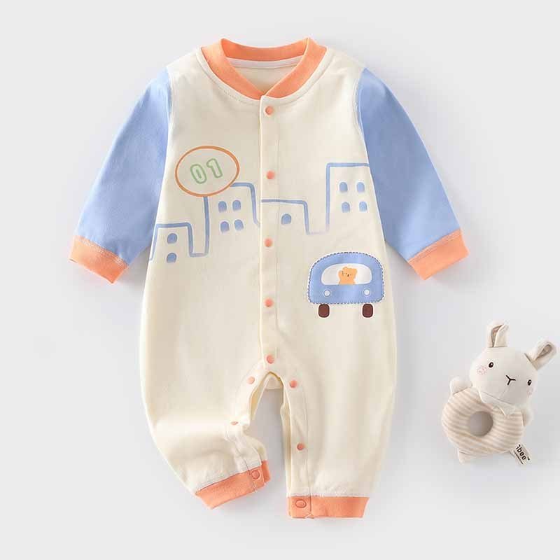 Kids Baby Boys Girls Cute Cartoon Print Long Sleeve Round Neck Bodysuit