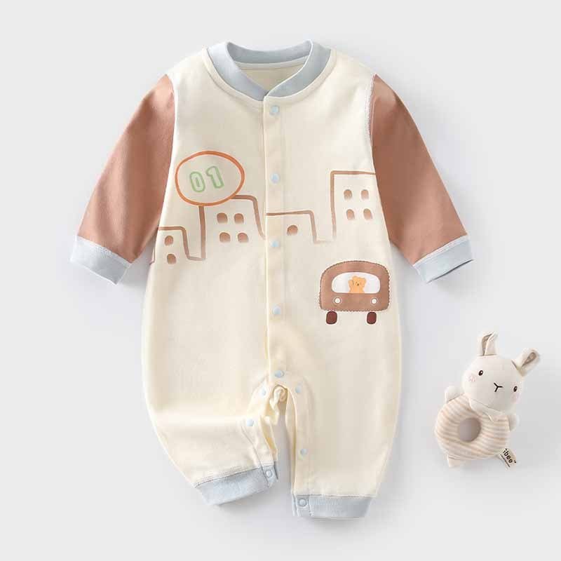 Kids Baby Boys Girls Cute Cartoon Print Long Sleeve Round Neck Bodysuit