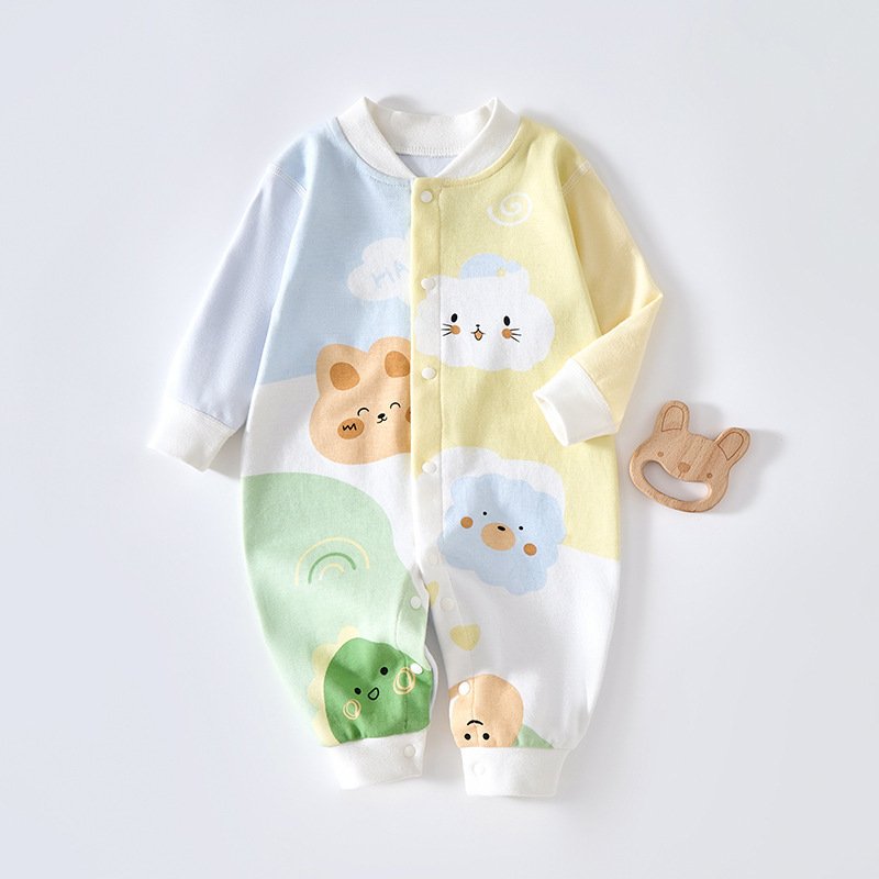 Kids Baby Boys Girls Cute Cartoon Print Long Sleeve Round Neck Romper
