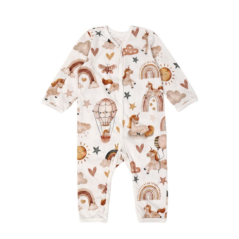 Kids Baby Boys Girls Cute Cartoon Print Long Sleeve Round Neck Romper