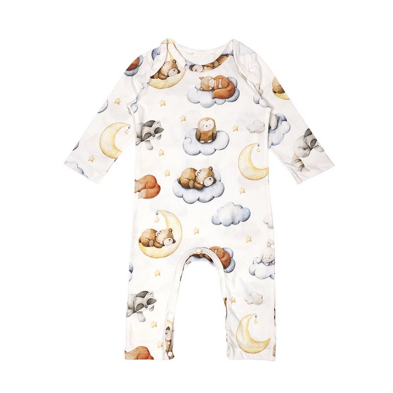 Kids Baby Boys Girls Cute Cartoon Print Long Sleeve Round Neck Romper