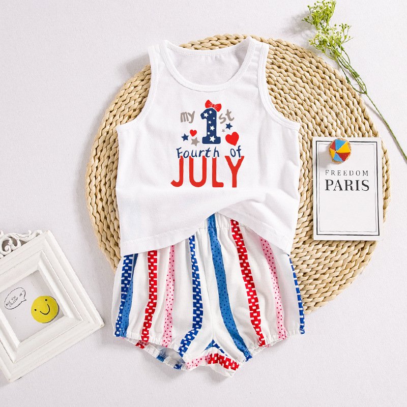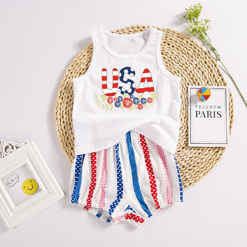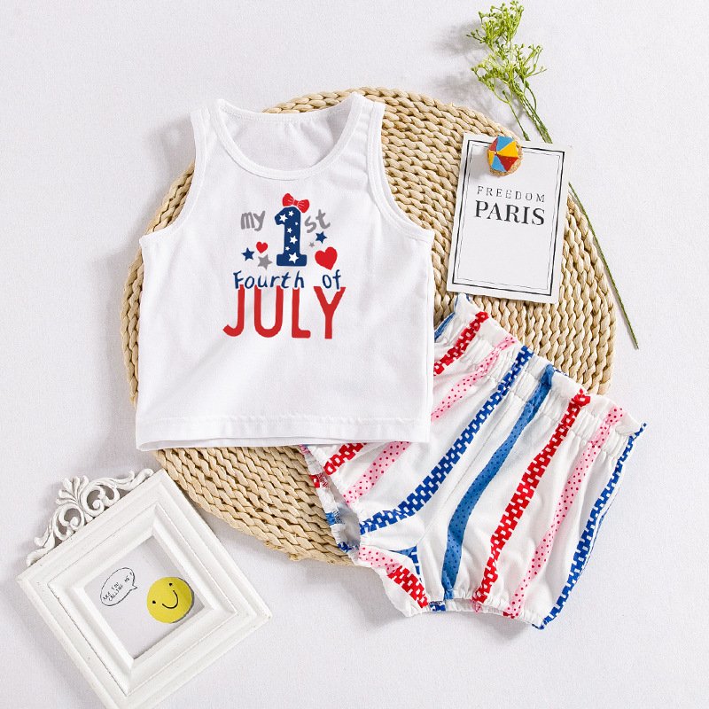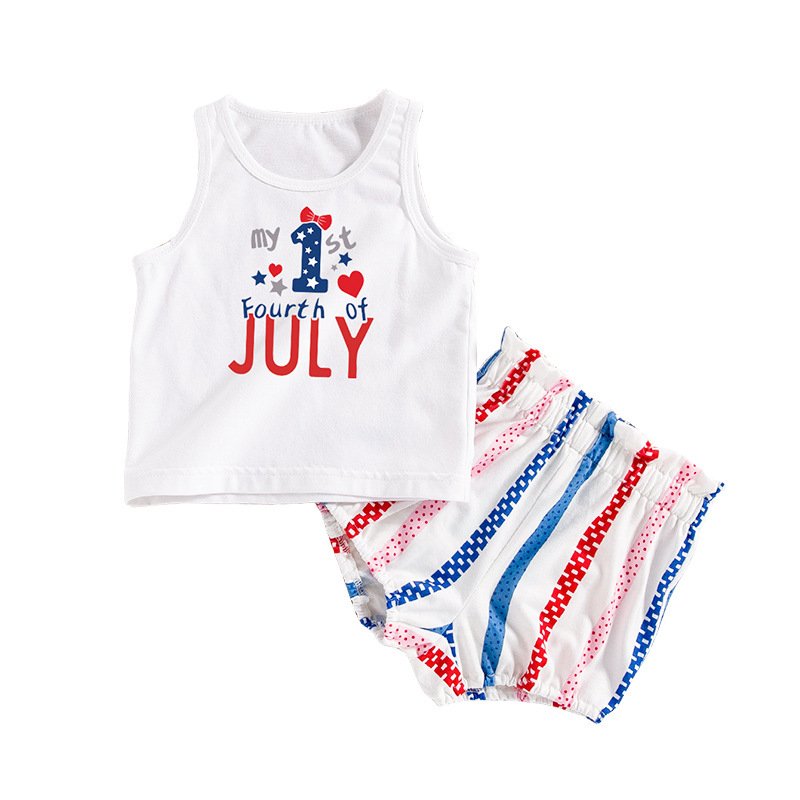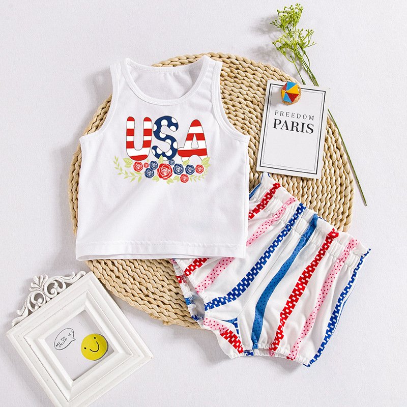 Kids Baby Boys Girls Cute Party Independence Day Stripe Print Tank Top Shorts Set