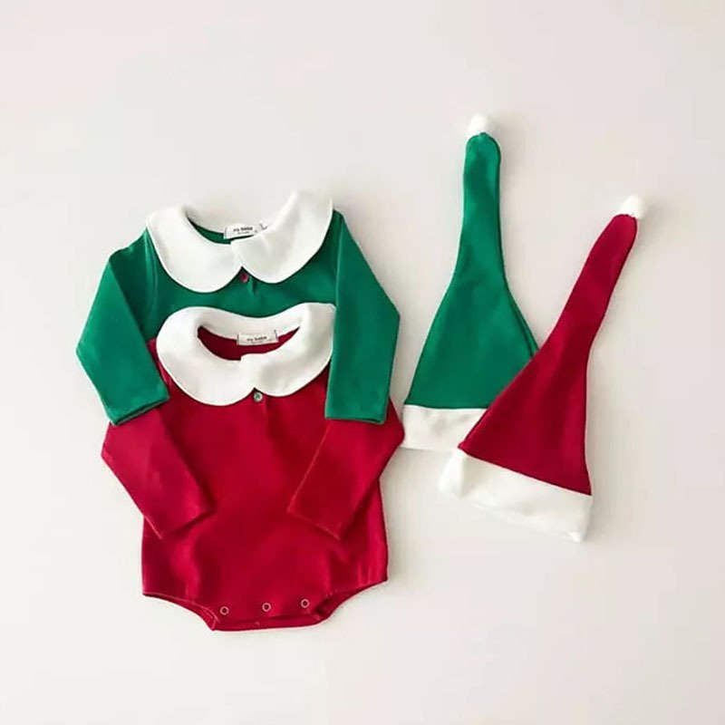Kids Baby Boys Girls Fashion Casual Cute Christmas Long Sleeve Lapel Bodysuit