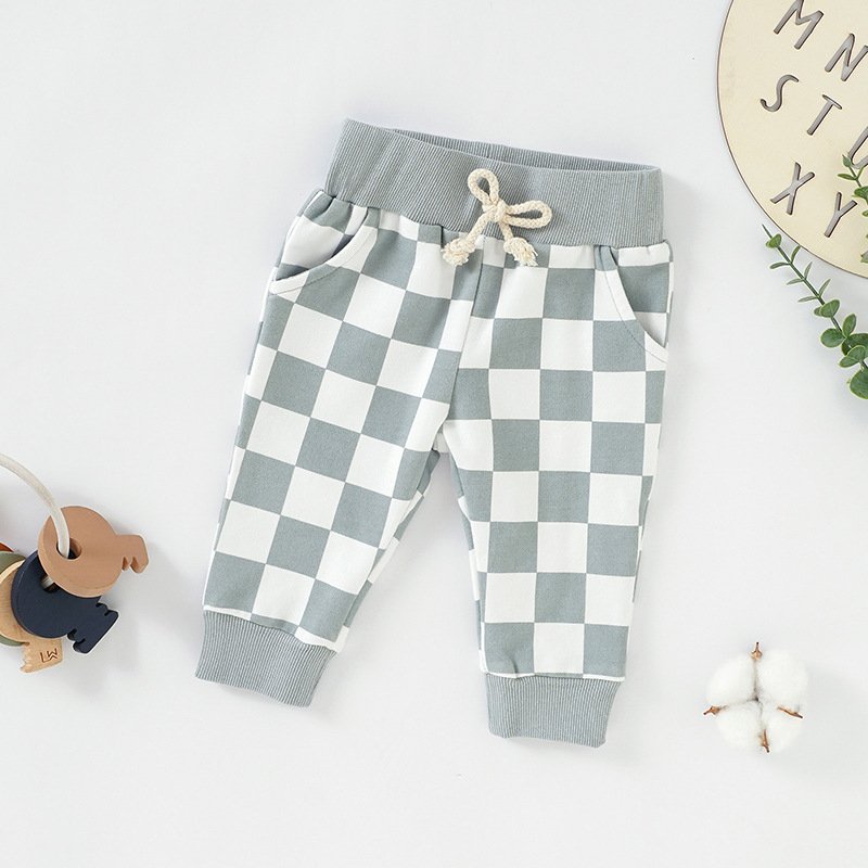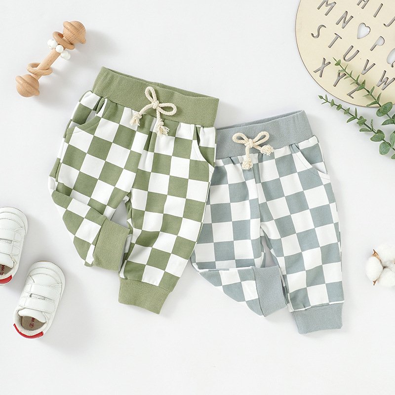 Kids Baby Boys Girls Fashion Casual Playd Print Trousers