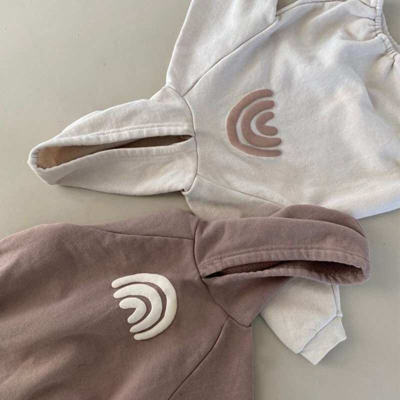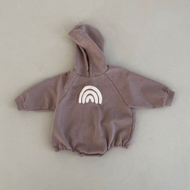 Kids Baby Boys Girls Fashion Casual Versatile Rainbow Strip Long Sleeve Hooded Romper