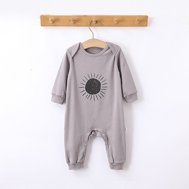 Kids Baby Boys Girls Fashion Casual Versatile Sun Moon Rainbow Strip Long Sleeve Round Neck Bodysuit
