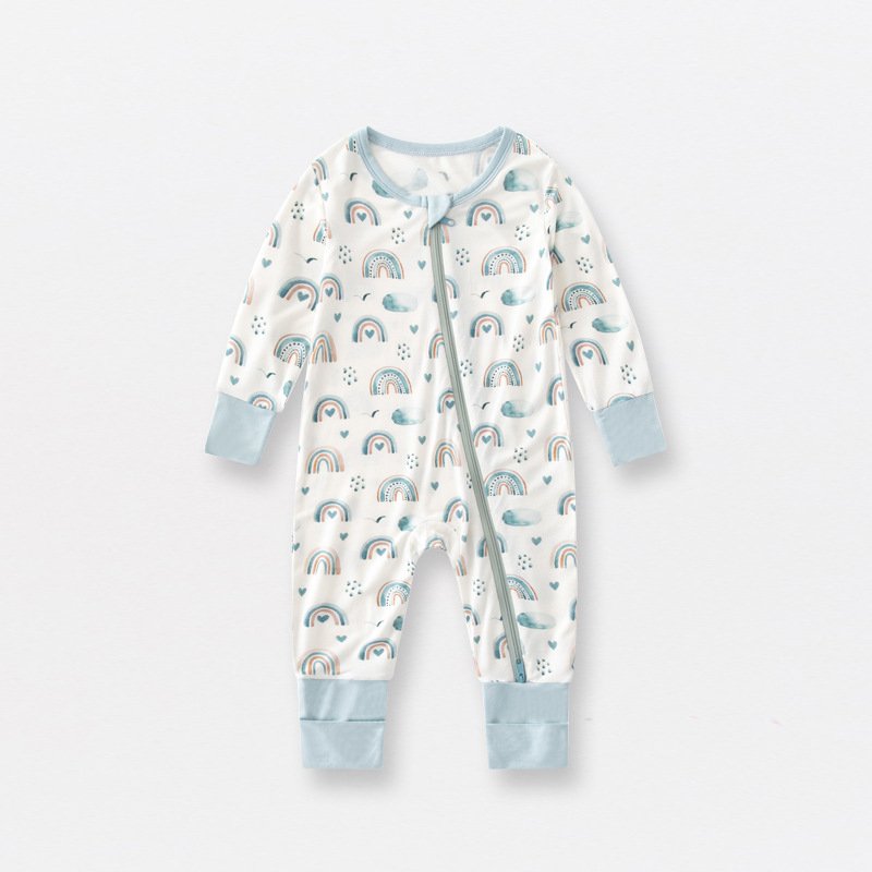 Kids Baby Boys Girls Spring And Autumn Cute Tiny Flower Rainbow Print Long Sleeve Romper