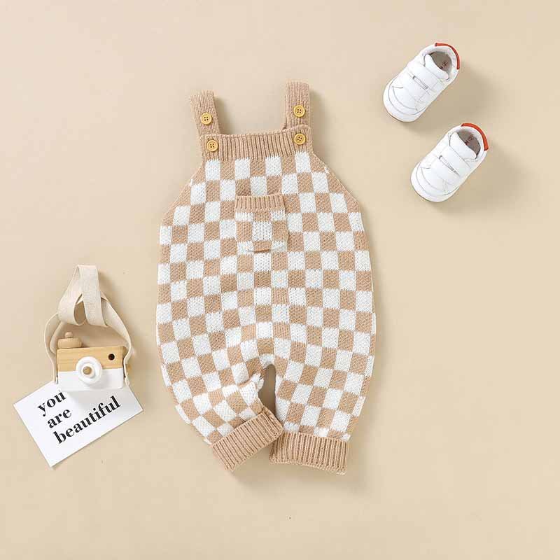 Kids Baby Boys Girls Spring Autumn Casual Cute Plaid Sleeveless Sweater Romper