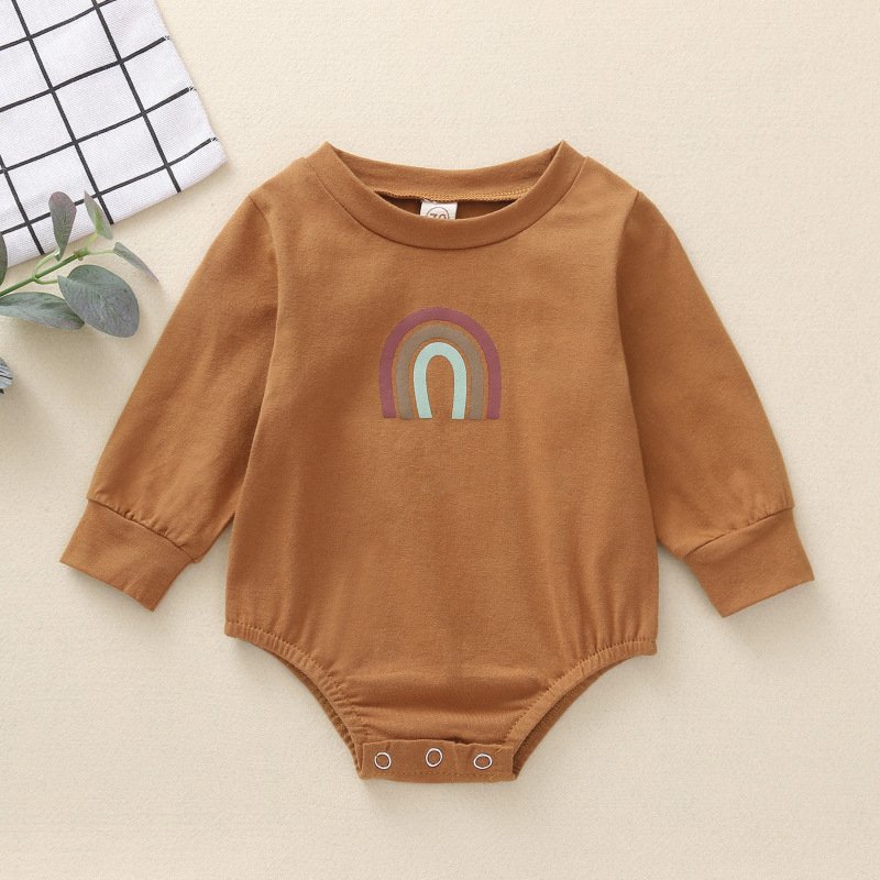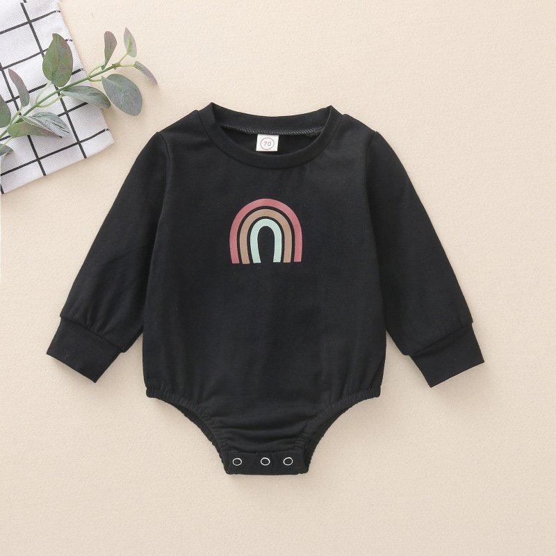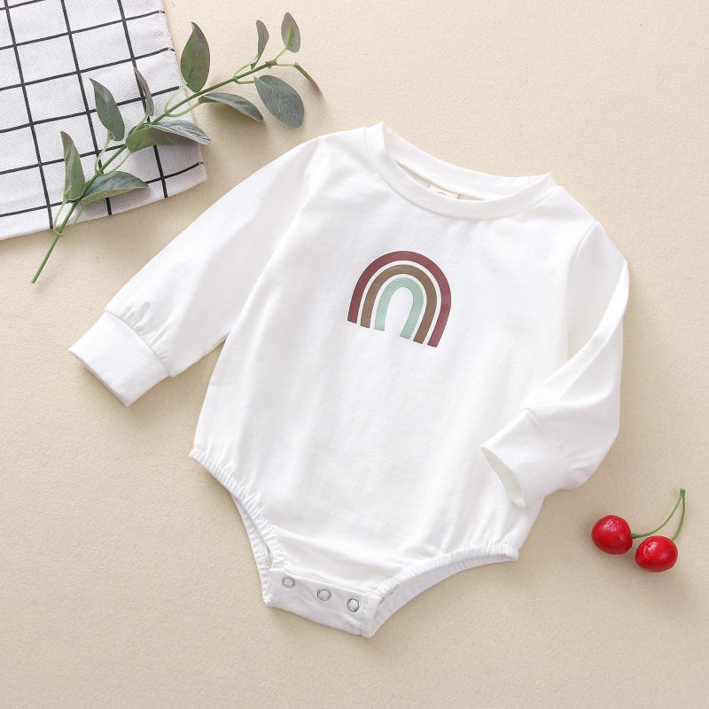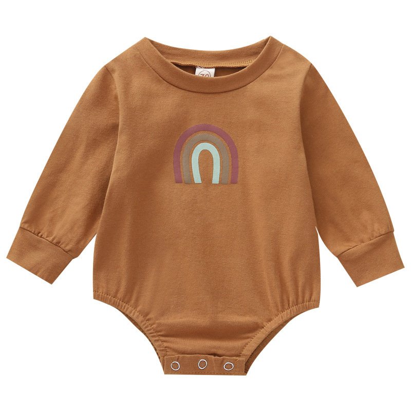 Kids Baby Boys Girls Spring Autumn Casual Cute Rainbow Long Sleeve Round Neck Romper