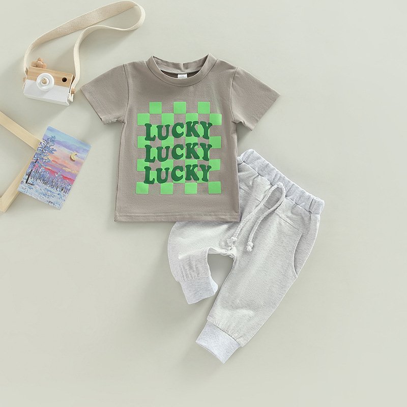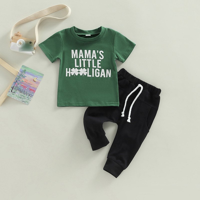 Kids Baby Boys Girls St. Patrick Day Letter Print Short-Sleeved Round Neck T-Shirt Trousers Set