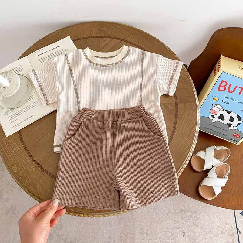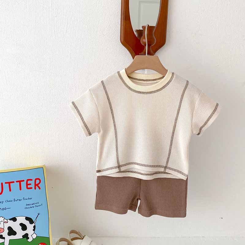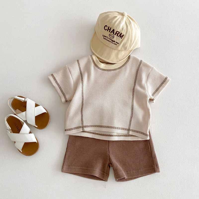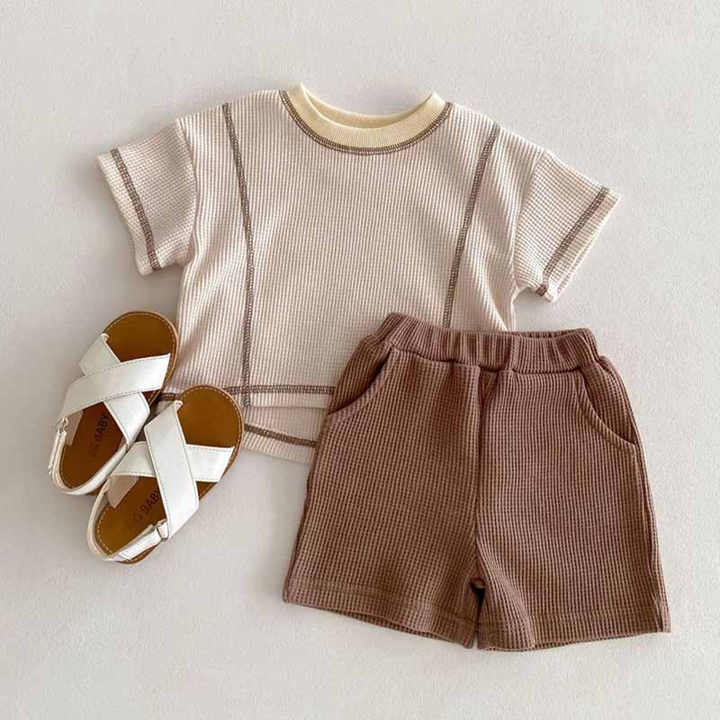 Kids Baby Boys Girls Summer Casual Cute Basic Stripe Short Sleeve T-Shirt Shorts Set