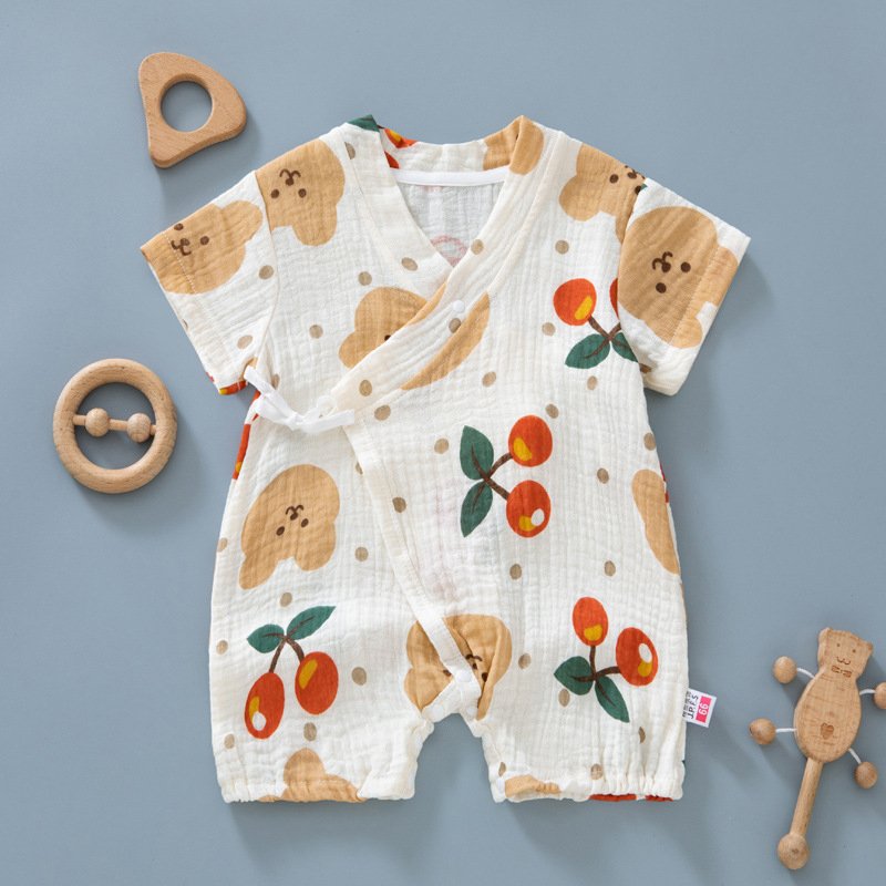 • Printed Cherry Gauze Short – Sleeve Jumpsuit – 3M (66)