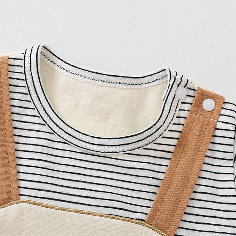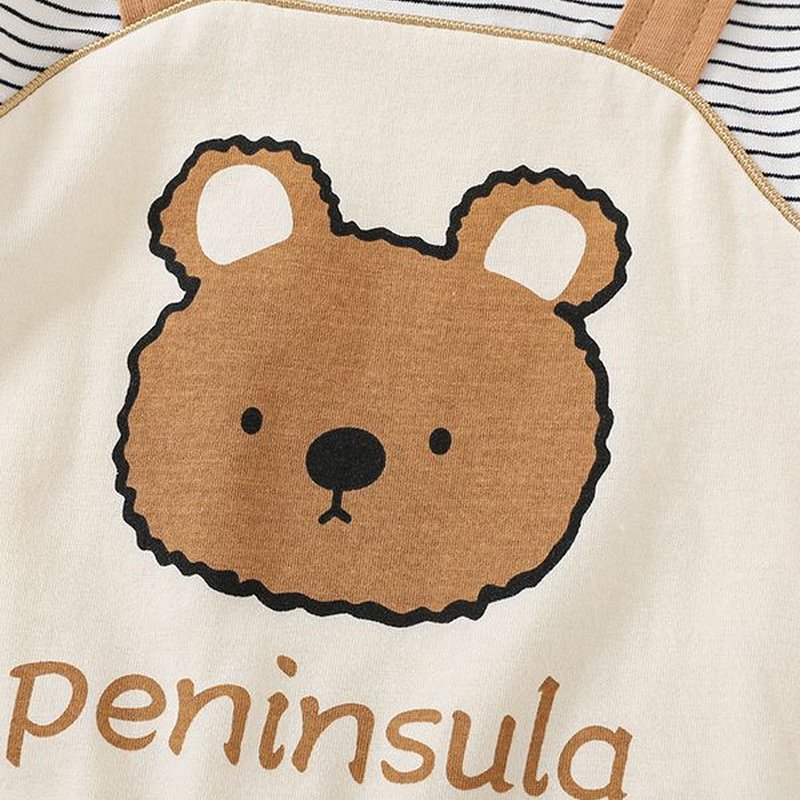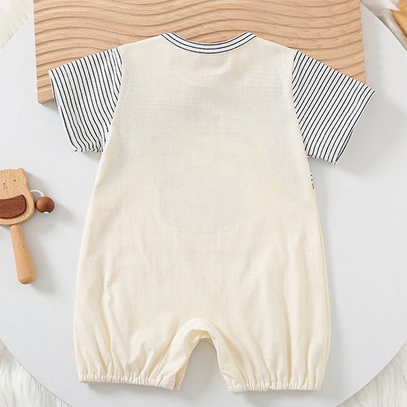 Kids Baby Boys Girls Summer Casual Cute Cartoon Bear Stripe Print Short Sleeve Romper