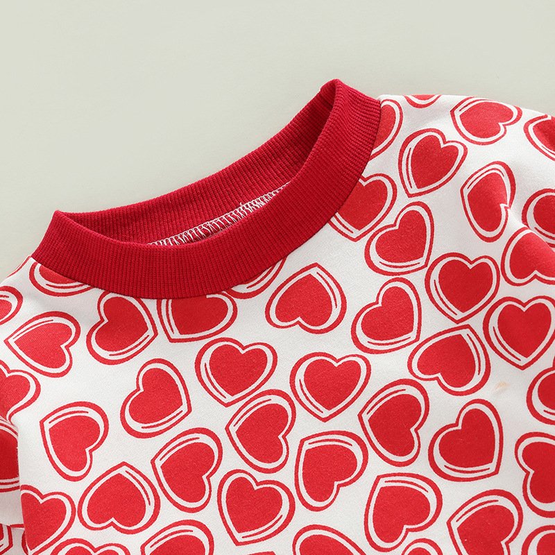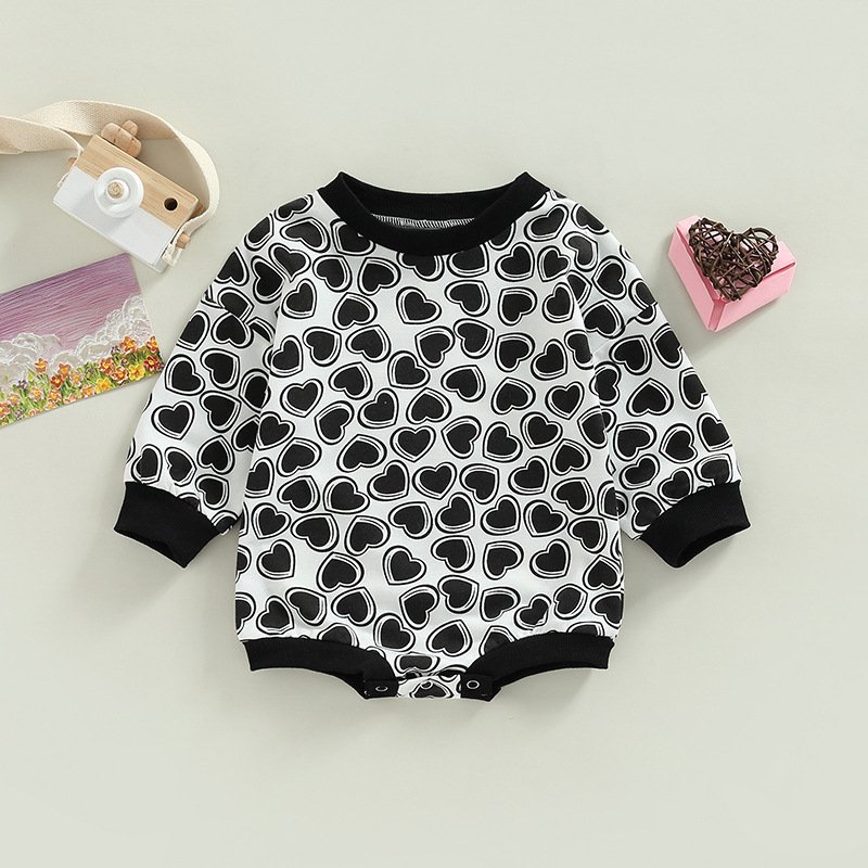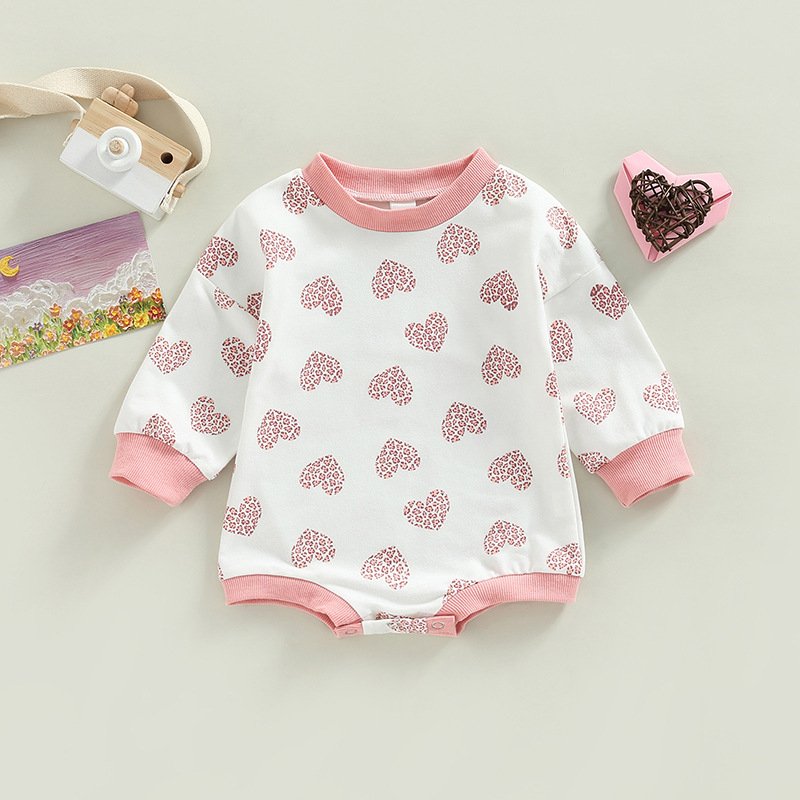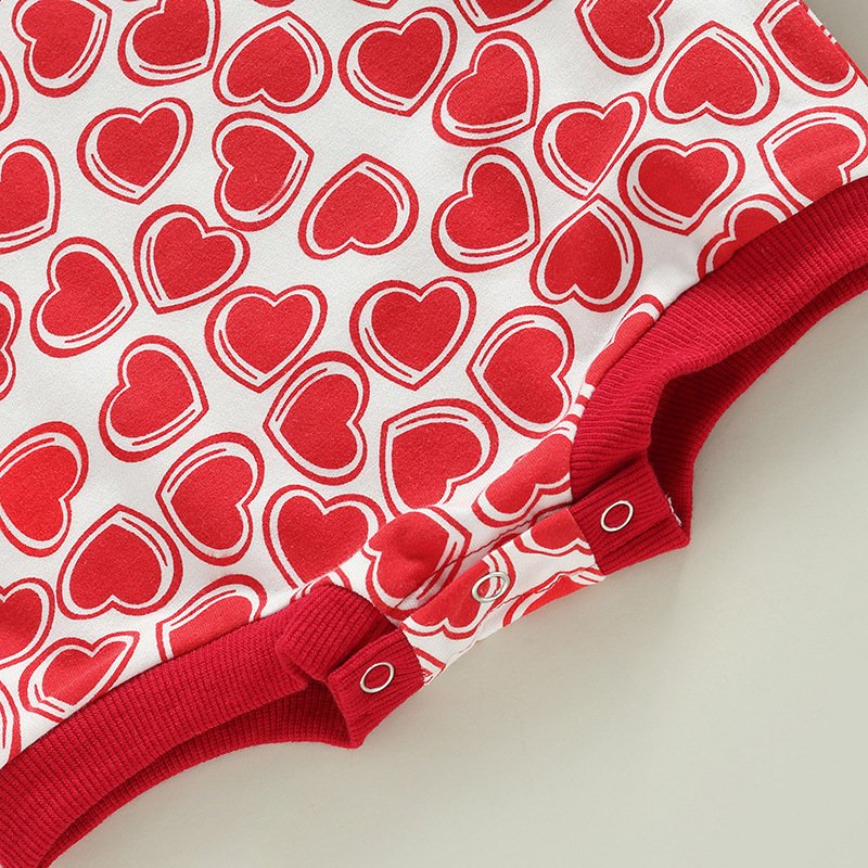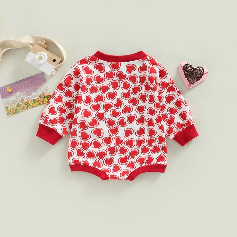 Kids Baby Boys Girls Valentine Casual Love Heart Print Long Sleeve Round Neck Romper