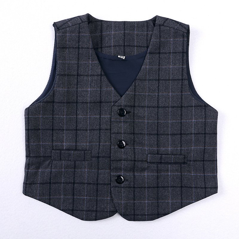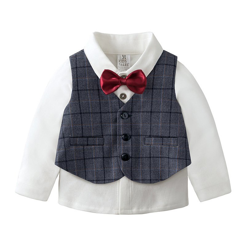 Kids Baby Boys Party British Style Plaid Bow Vest Solid Color Long Sleeve Lapel Shirt Trousers Set