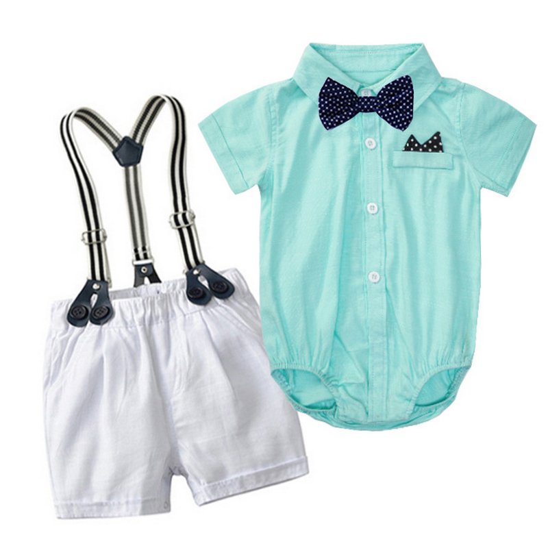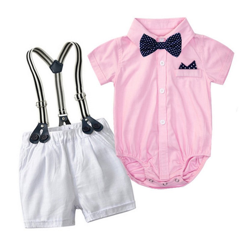 Kids Baby Boys Party Clothing British Style Plaid Short Sleeve Lapel Romper Shorts Set