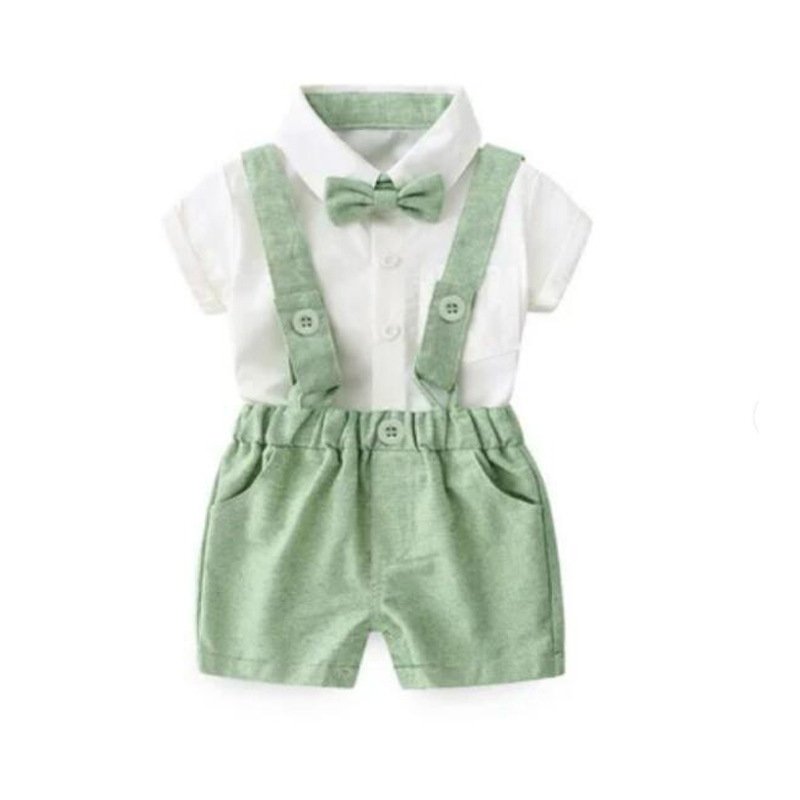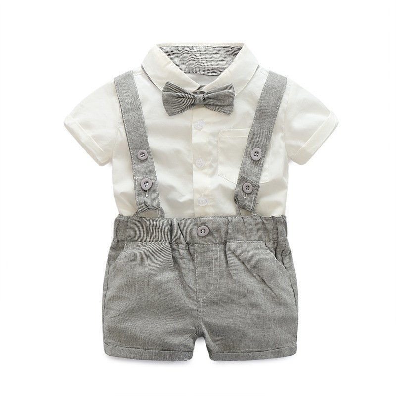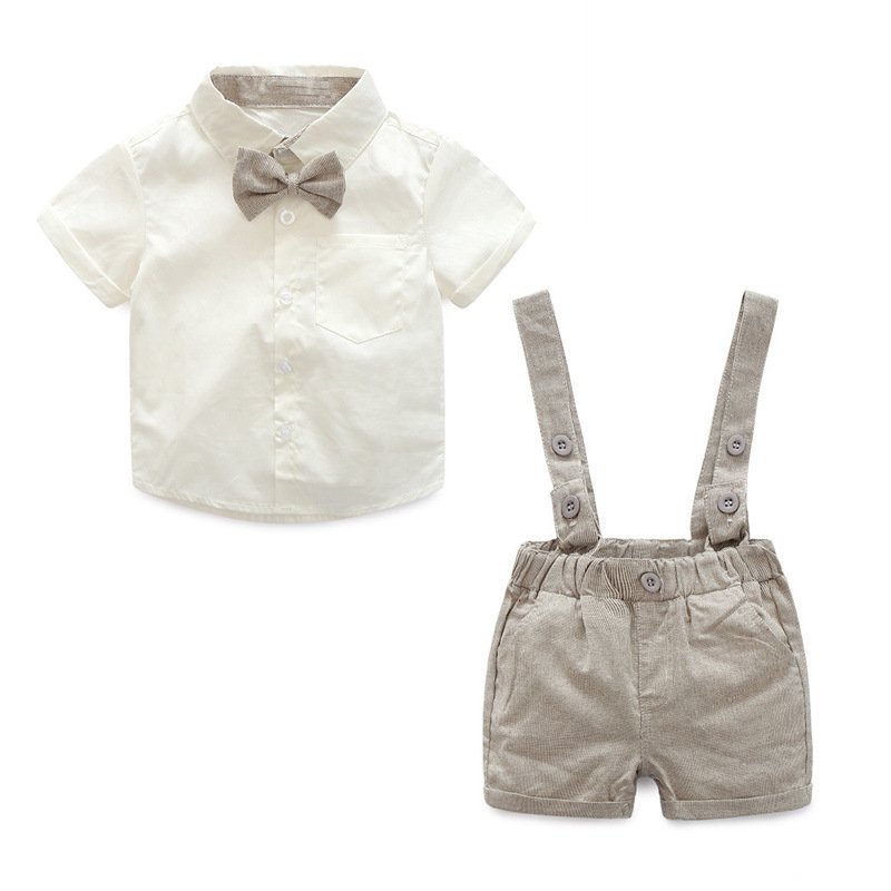 Kids Baby Boys Party Clothing British Style Solid Color Bow Short Sleeve Lapel Shirt Shorts Set