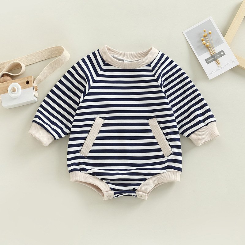 Kids Baby Boys Spring Autumn Casual Cute Stripe Print Long Sleeve Romper