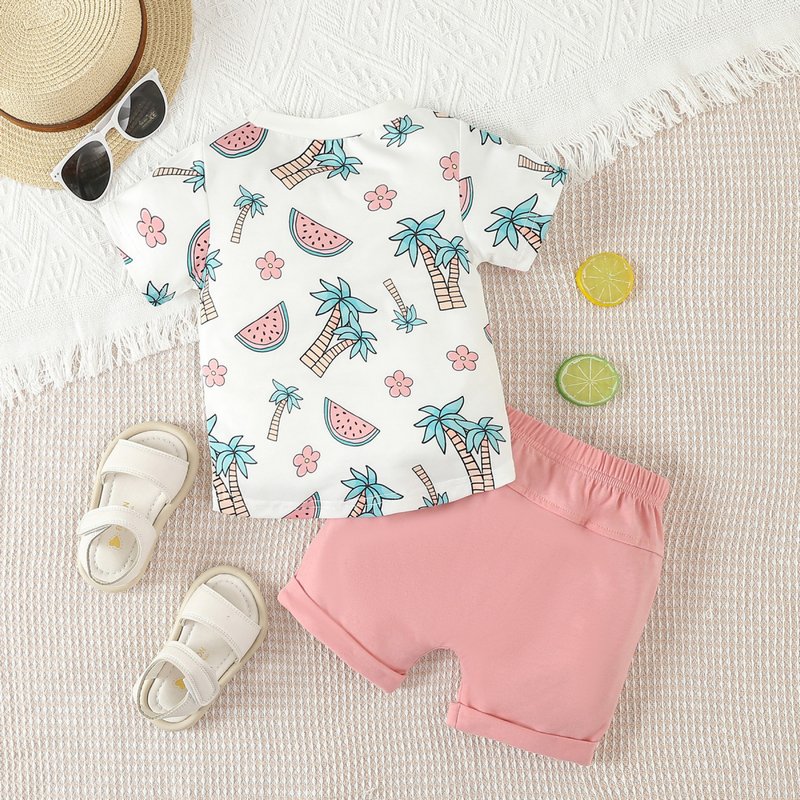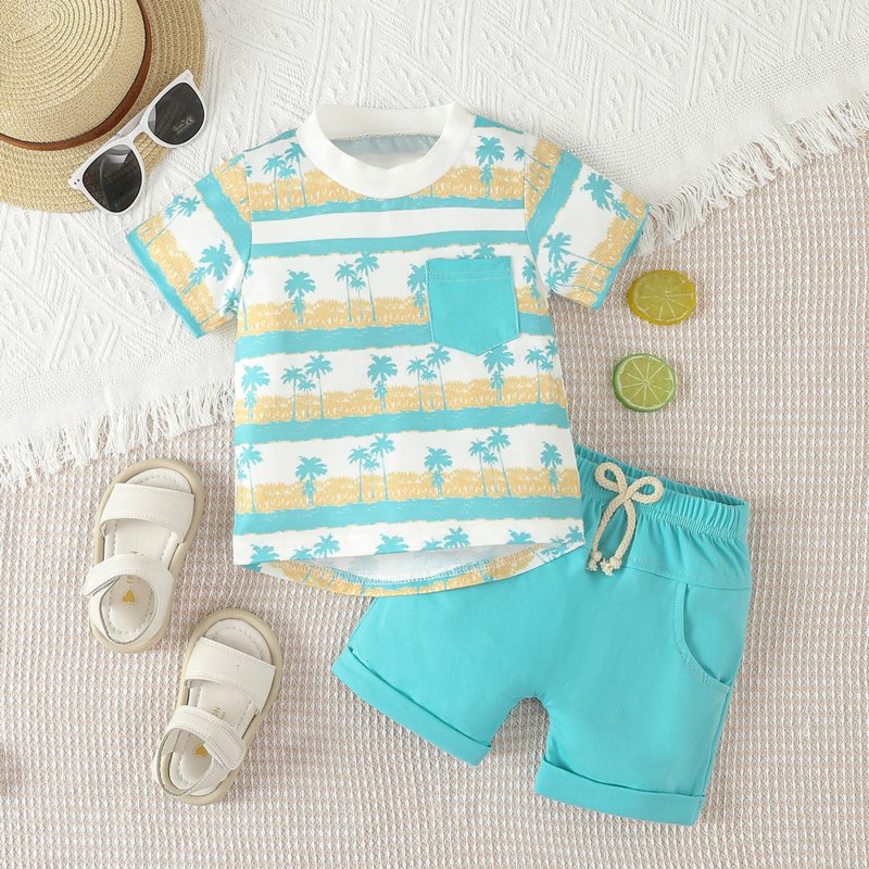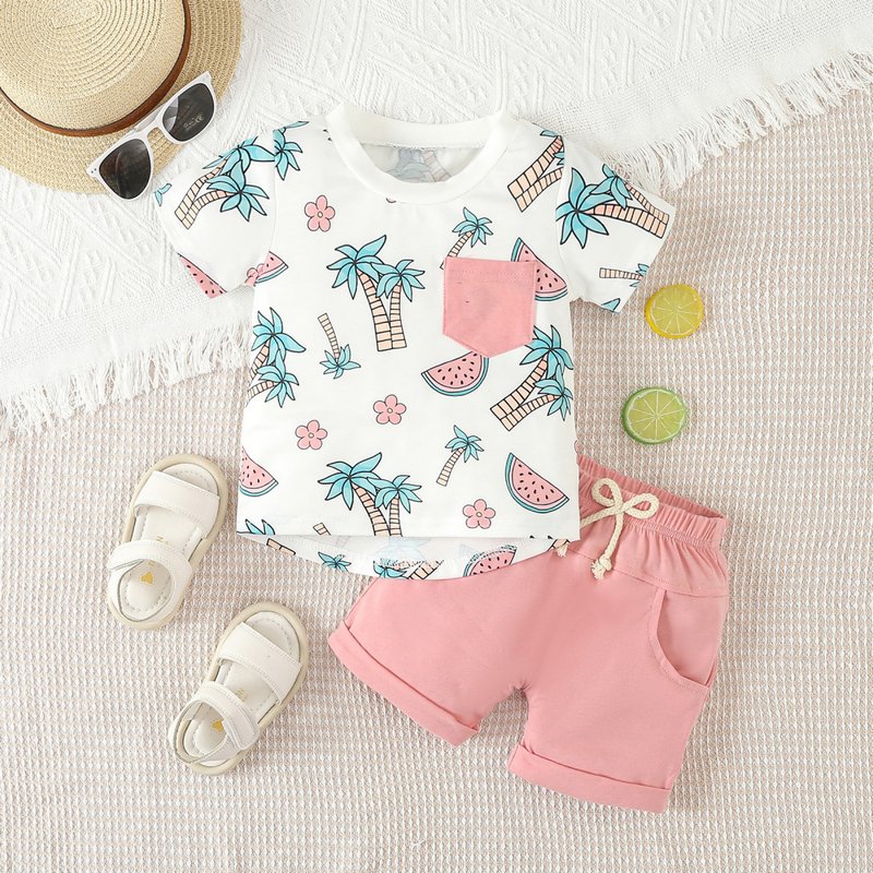 Kids Baby Boys Summer Casual Cute Print Short Sleeve T-Shirt Shorts Set