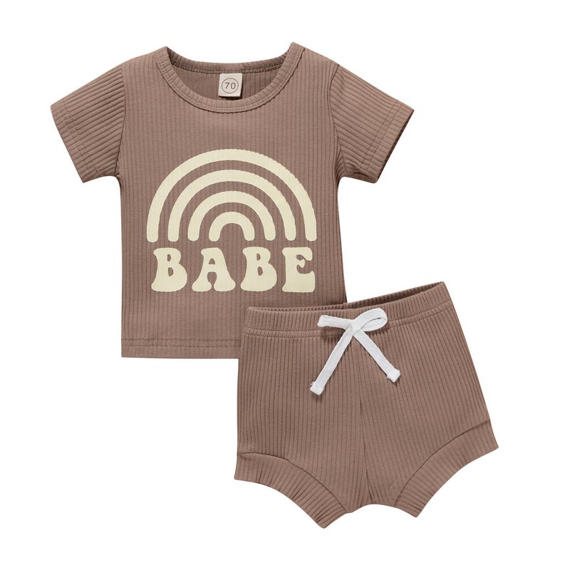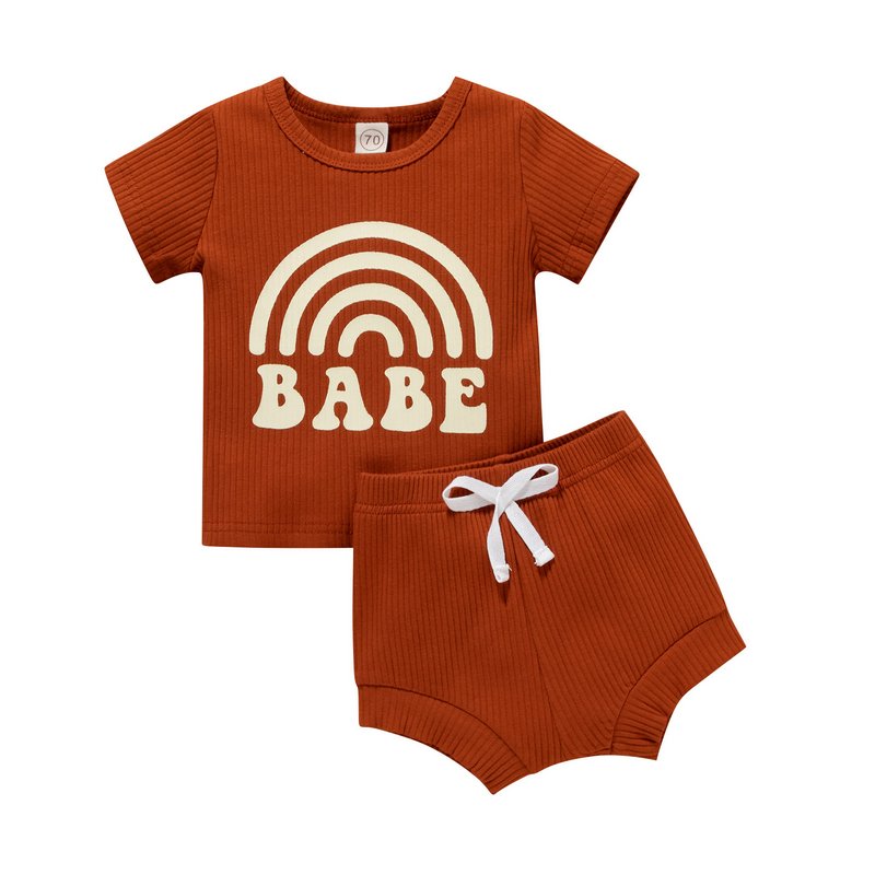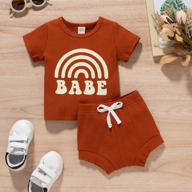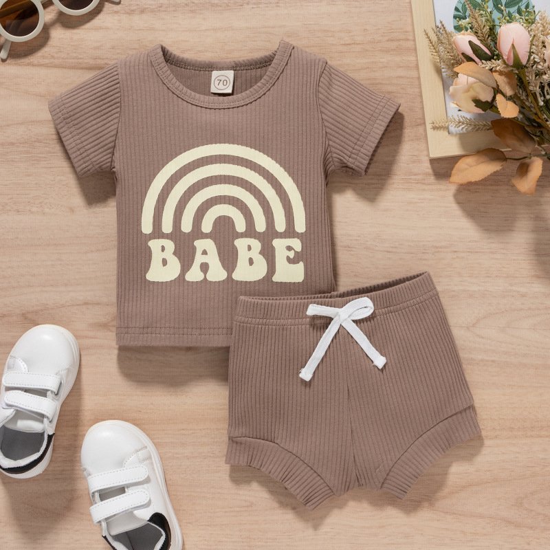 Kids Baby Boys Summer Casual Cute Rainbow Stripe Print Short Sleeve Round Neck T-Shirt Shorts Set