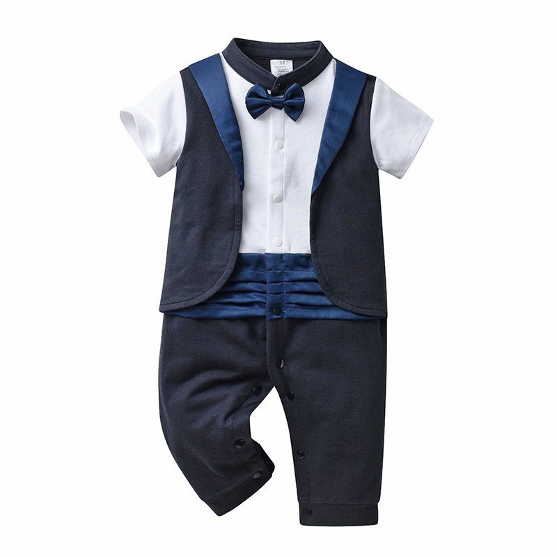 Kids Baby Boys Summer Fashion Casual British Style Bow Waistcoat Shirt Boys Party Clothing Romper