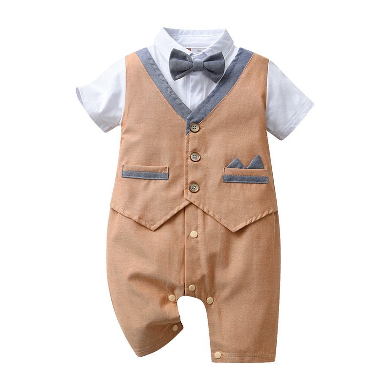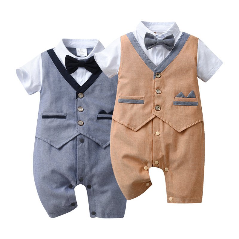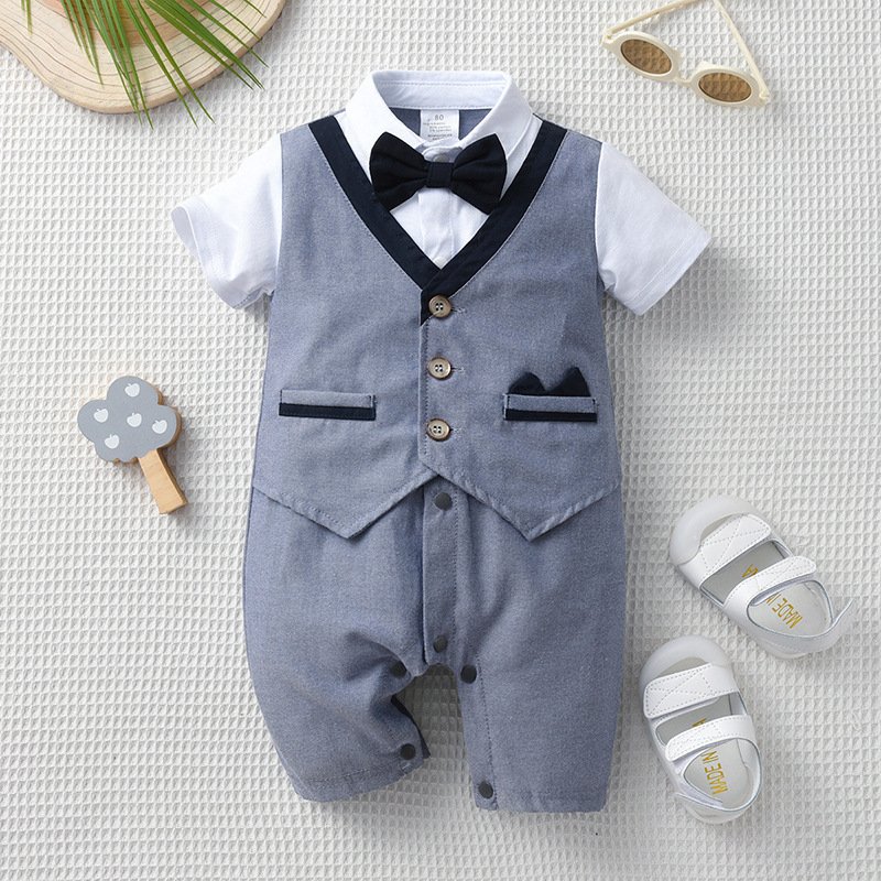 Kids Baby Boys Summer Fashion Casual British Style Bow Waistcoat Shirt Boys Party Clothing Romper