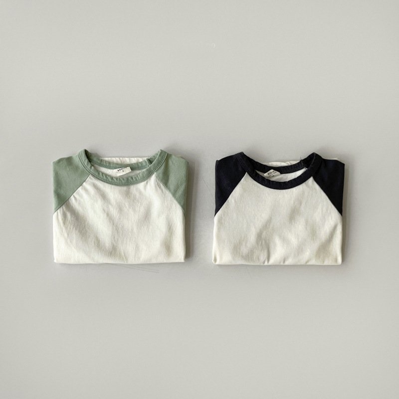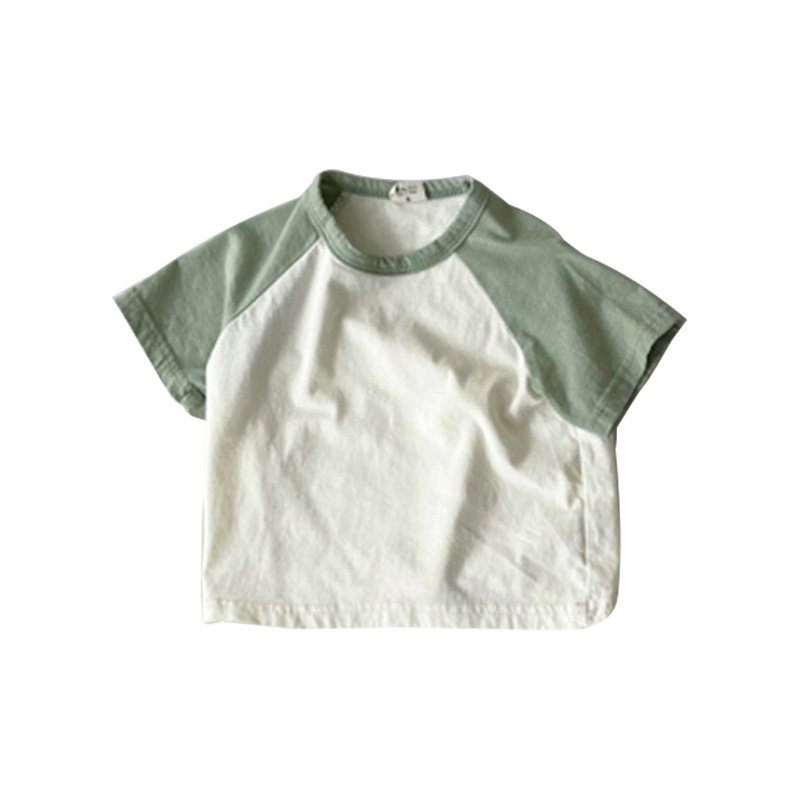 Kids Baby Fashion Casual Color Block Cotton Round Neck Short-Sleeve T-Shirt