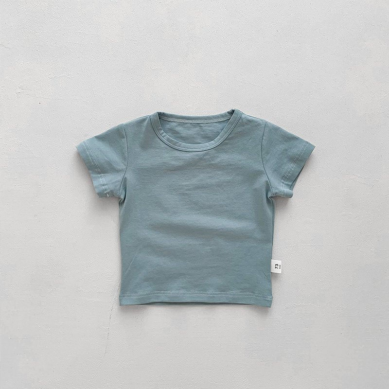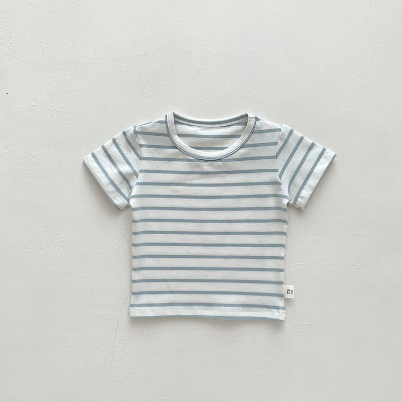 Kids Baby Fashion Casual Solid Color Stripe Cotton Round Neck Short-Sleeve T-Shirt