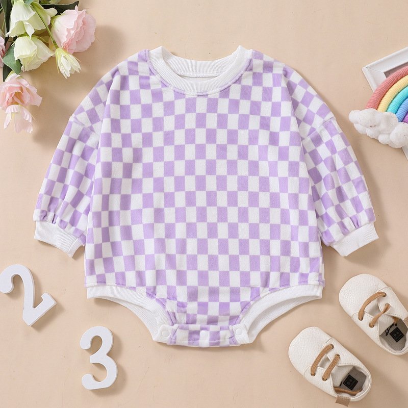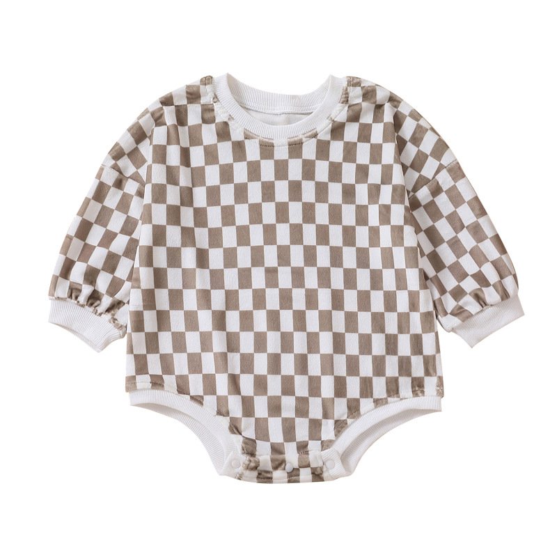 Kids Baby Girl Boy Fashion Check Jumpsuit
