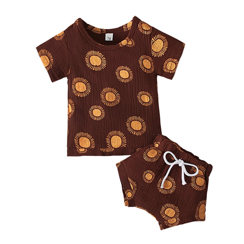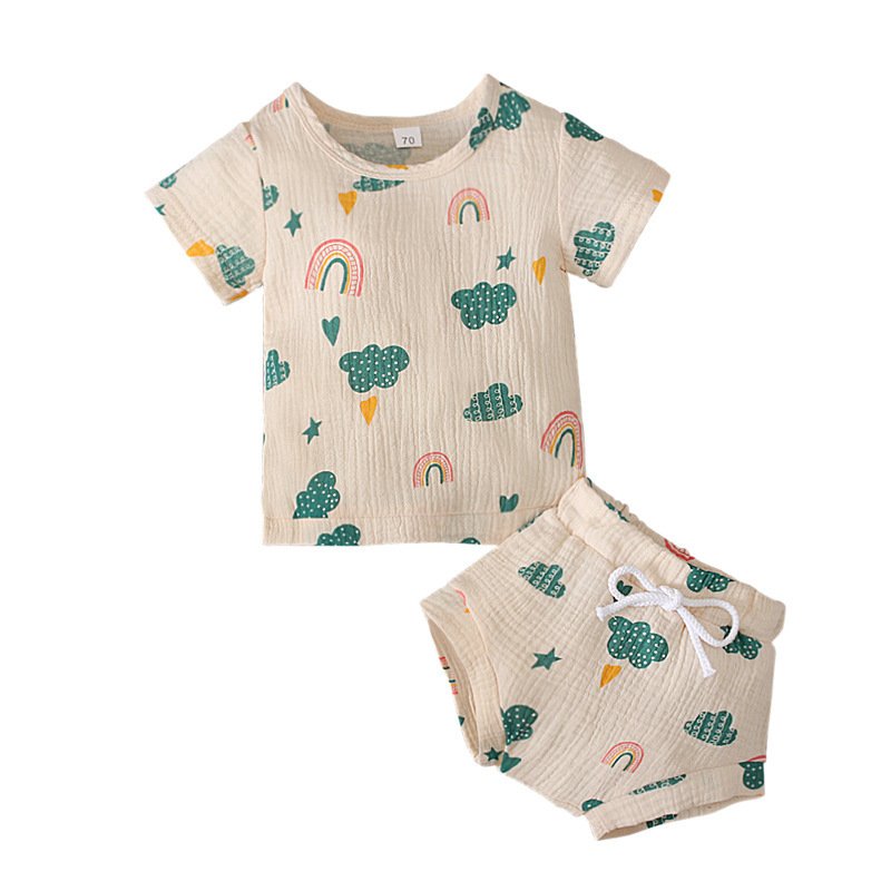 Kids Baby Girl Boy Fashion Short Sleeve Rainbow Cactus Print Tank Top + Shorts Two Piece Set
