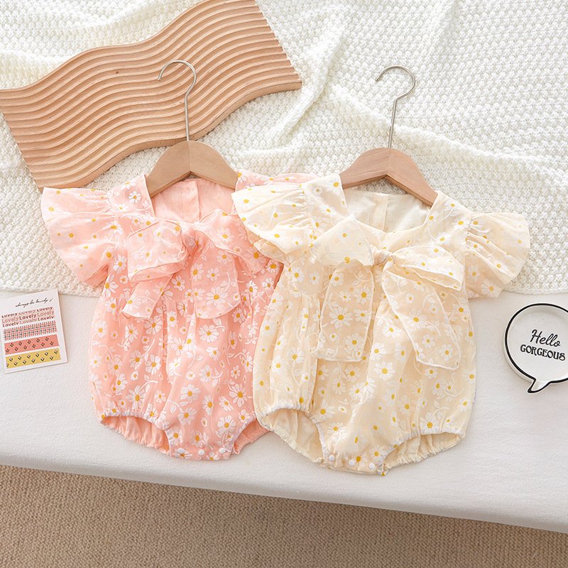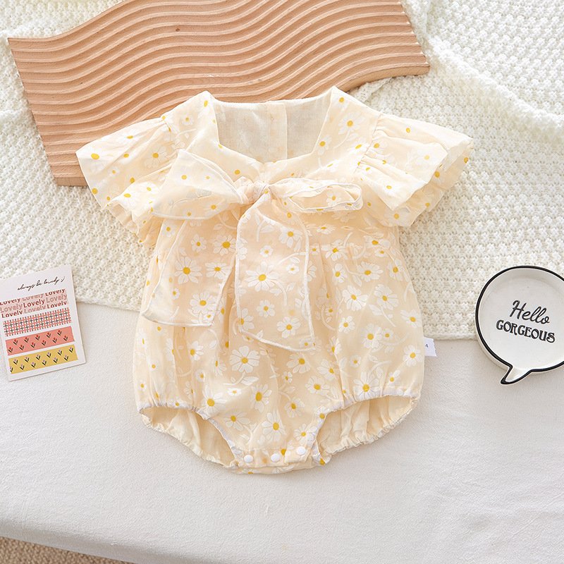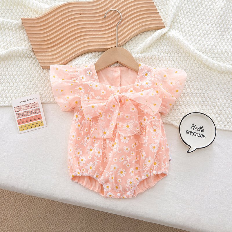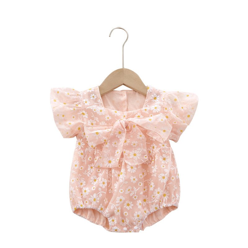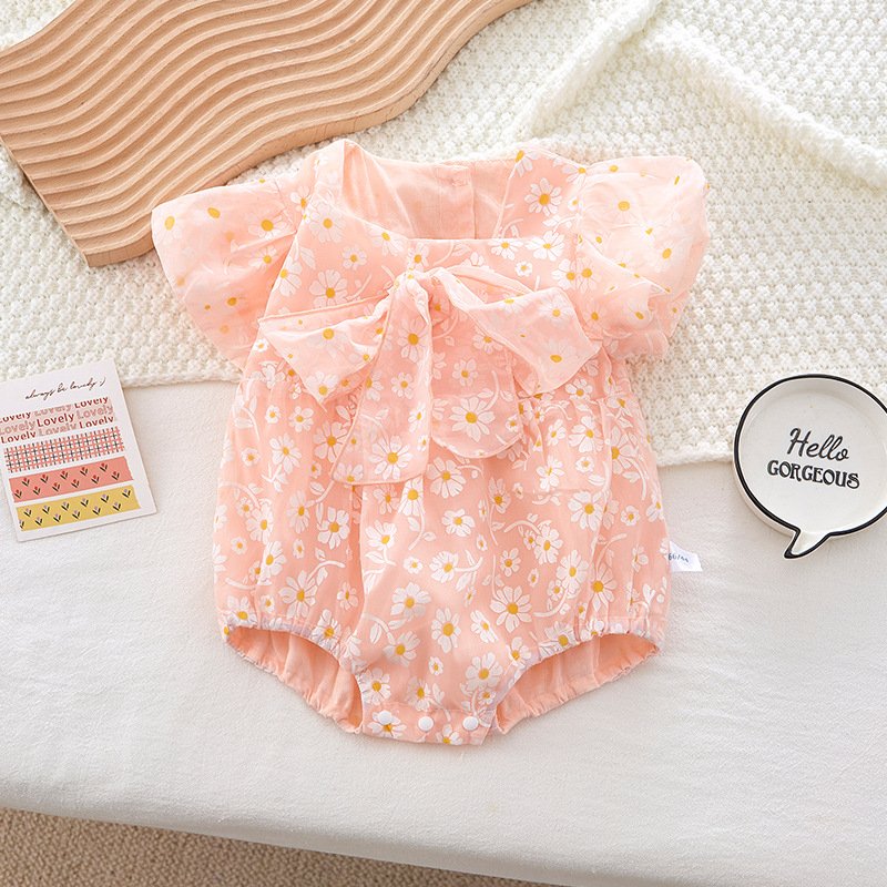 Kids Baby Girl Fashion Cute Princess Floral Printing Bow Romper