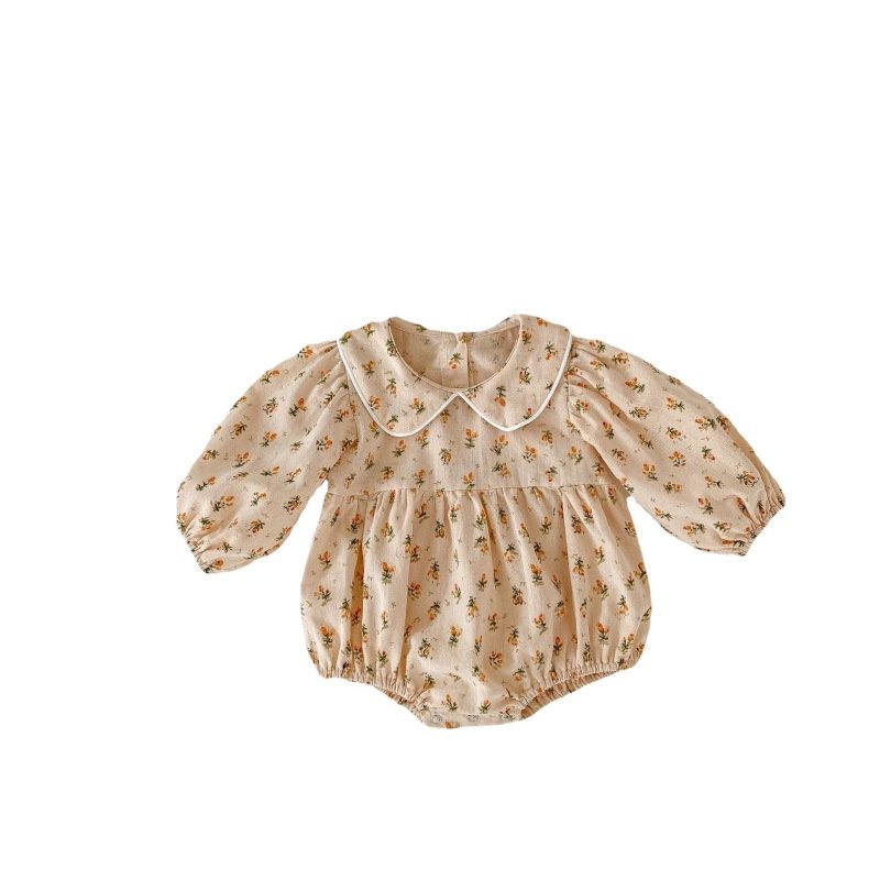Kids Baby Girl Fashion Doll Collar Tiny Flower Long Sleeve Triangle Romper Jumpsuit