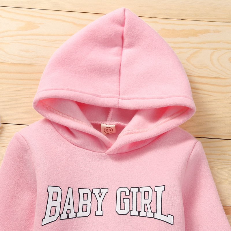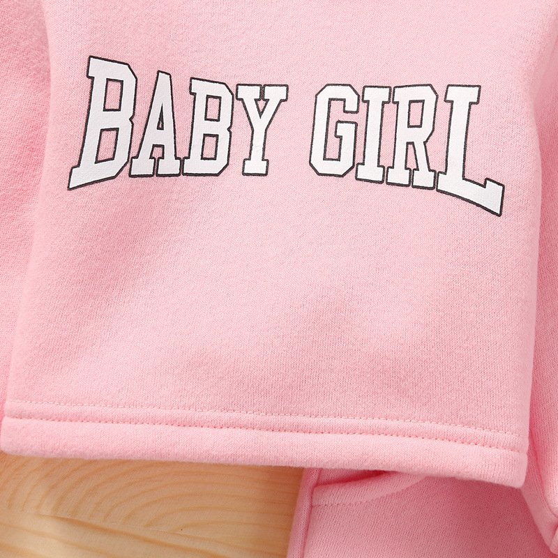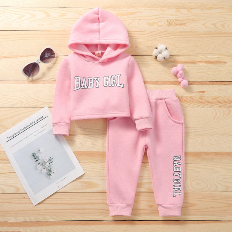 Kids Baby Girl Fashion Letter Print Cropped Hooded Casual Sweater Pants Two-Piece Set