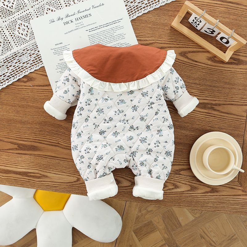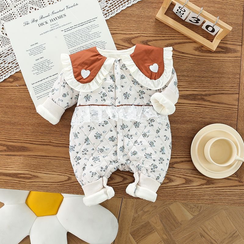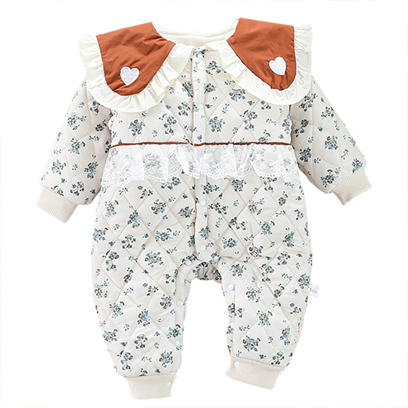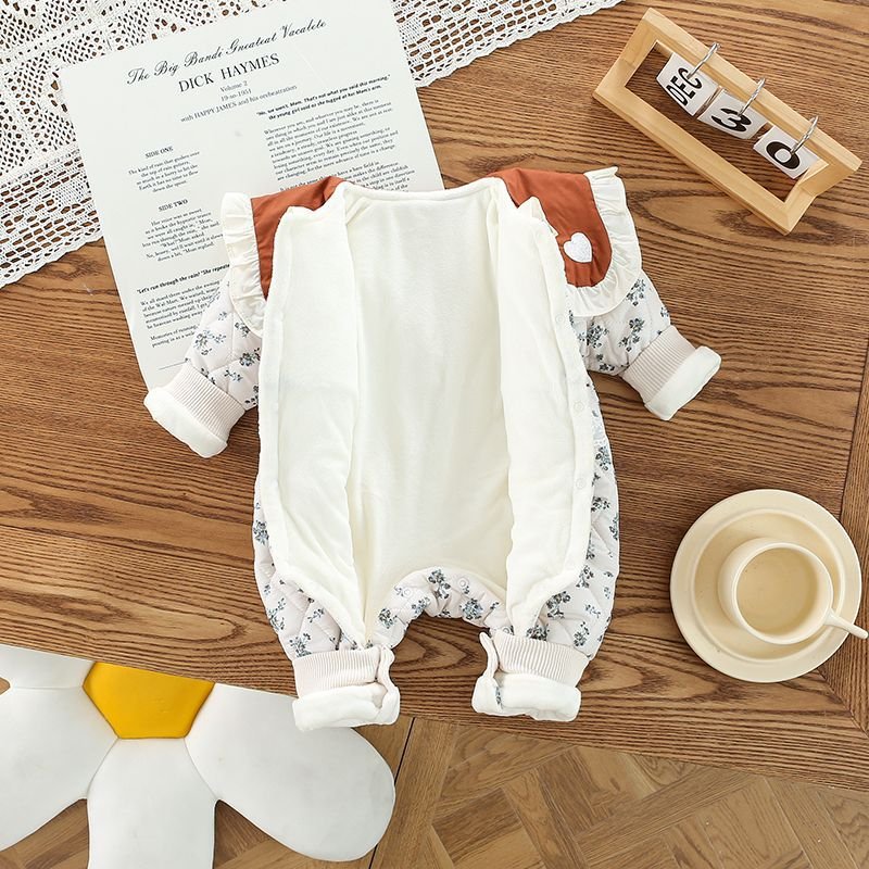 Kids Baby Girls Autumn Winter Casual Cute Tiny Flower Fleeces Long Sleeve Romper