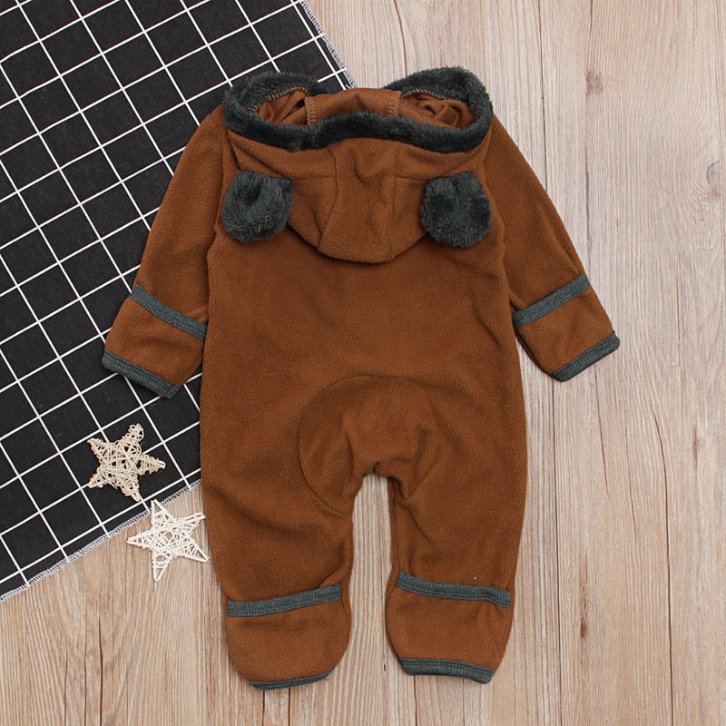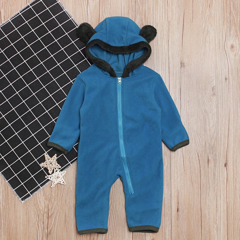 Kids Baby Girls Boys Autumn Winter Fashion Casual Cute Solid Color Velveteen Cartoon Bear Zipper Romper
