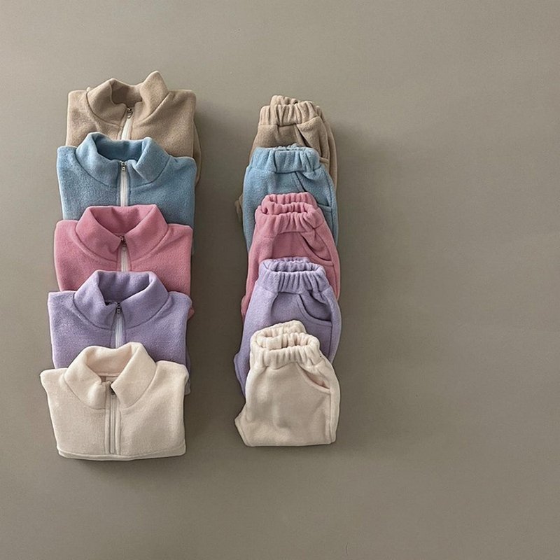 Kids Baby Girls Boys Autumn Winter Fashion Casual Solid Color Woollining Sweatshirts Zipper Long Sleeve Trousers Set