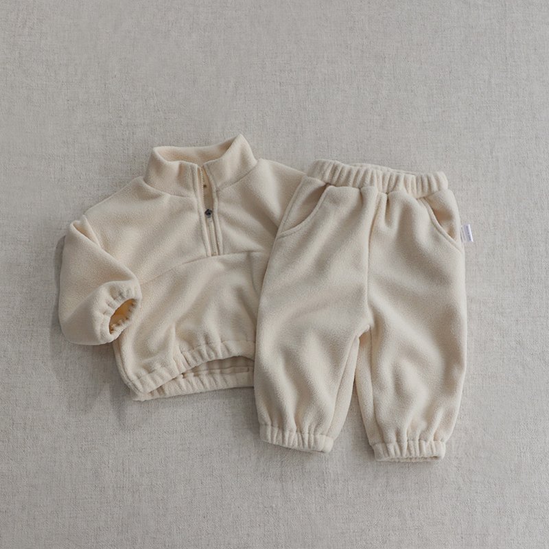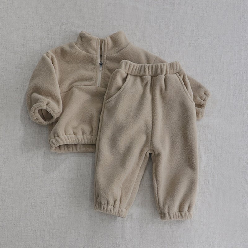 Kids Baby Girls Boys Autumn Winter Fashion Casual Solid Color Woollining Sweatshirts Zipper Long Sleeve Trousers Set