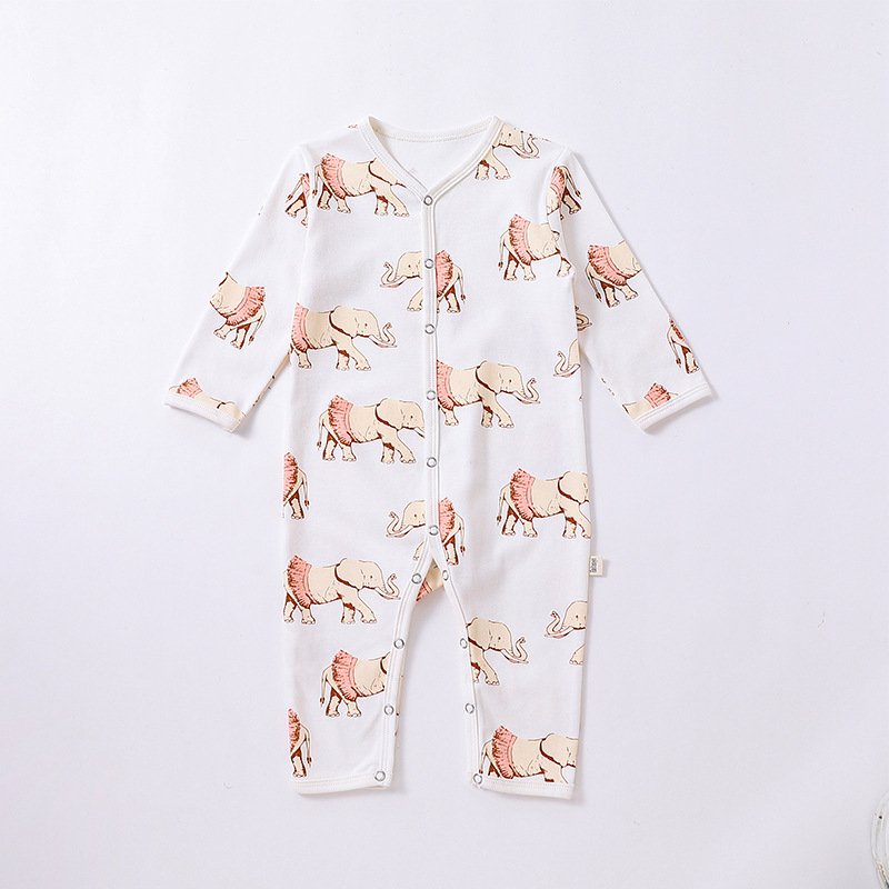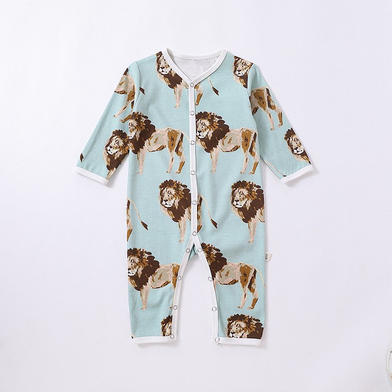 Kids Baby Girls Boys Spring Autumn Cute Cotton Duck Tiger Elephant Lion Cartoon Snap Button Bodysuit