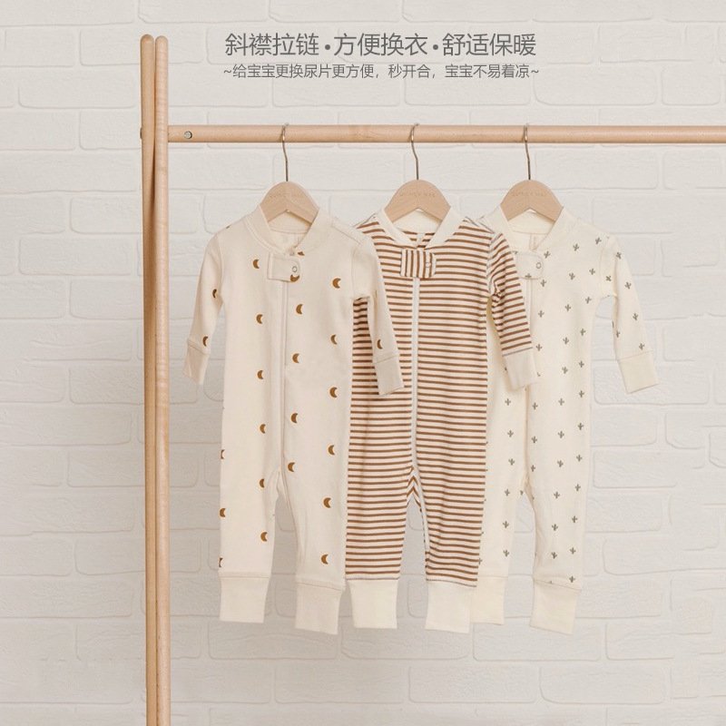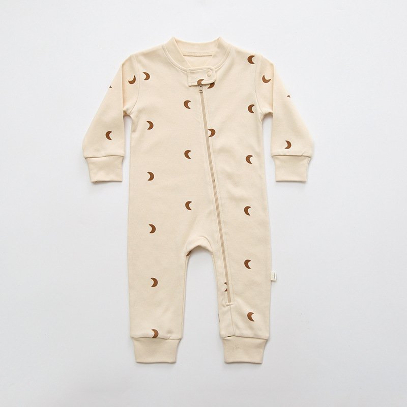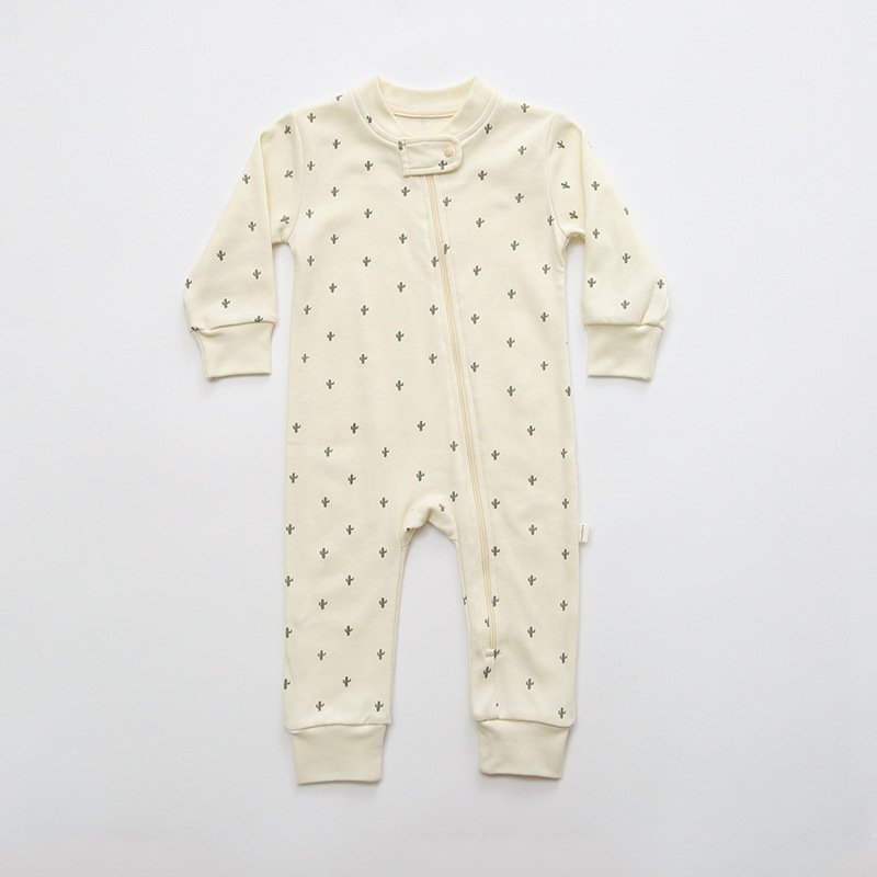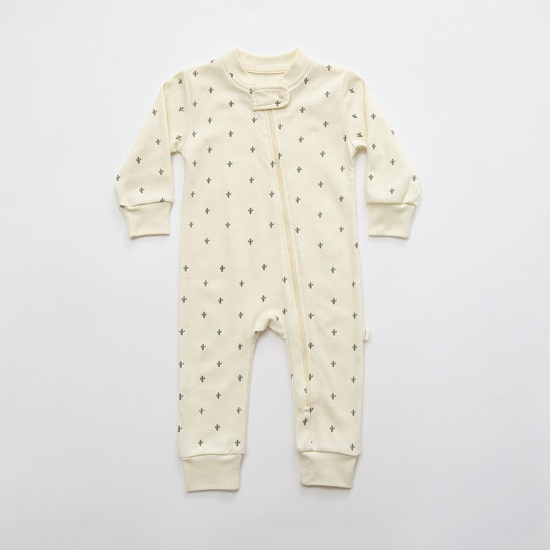 Kids Baby Girls Boys Spring Cute Cotton Cactus Moon Striped Pattern Zipper Bodysuit