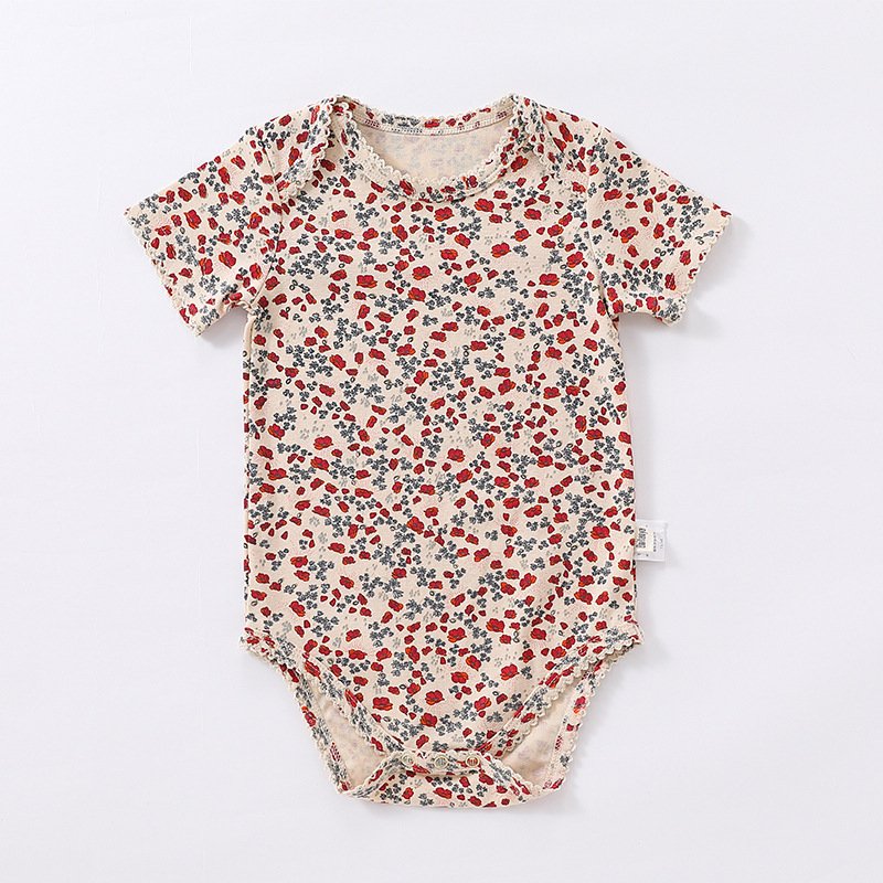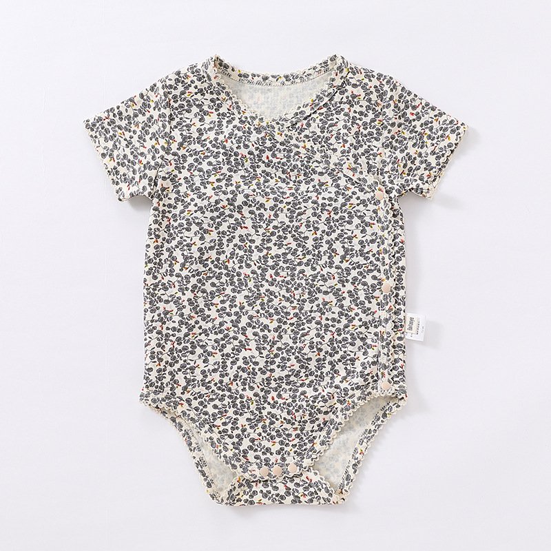 Kids Baby Girls Boys Summer Cute Cotton Side Open Tiny Flower Round Neck Romper