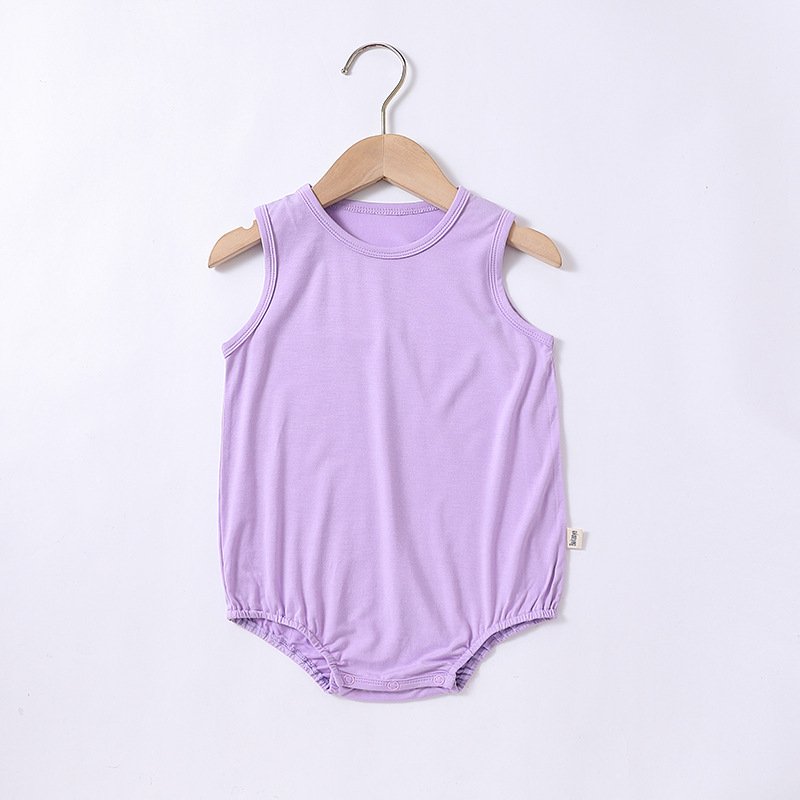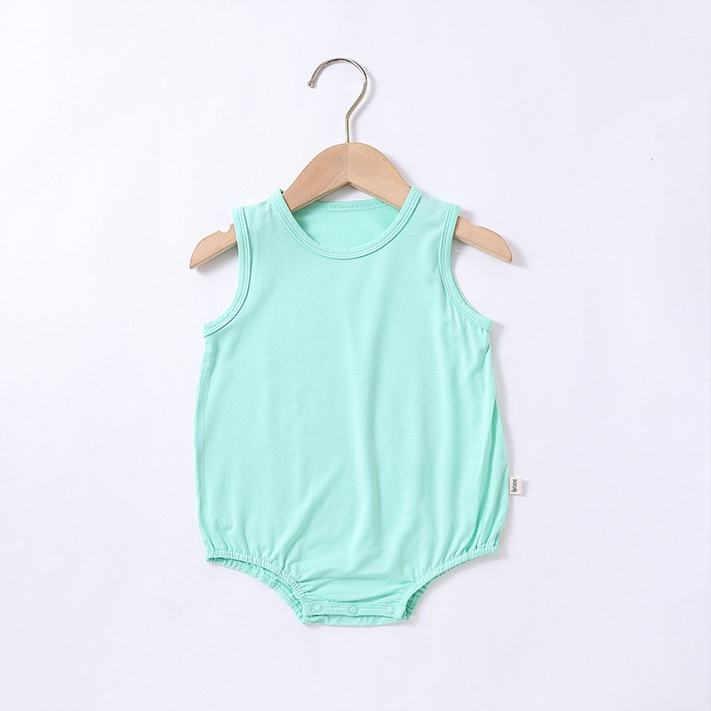 Kids Baby Girls Boys Summer Cute Solid Color Modal Sleeveless Round Neck Bodysuit