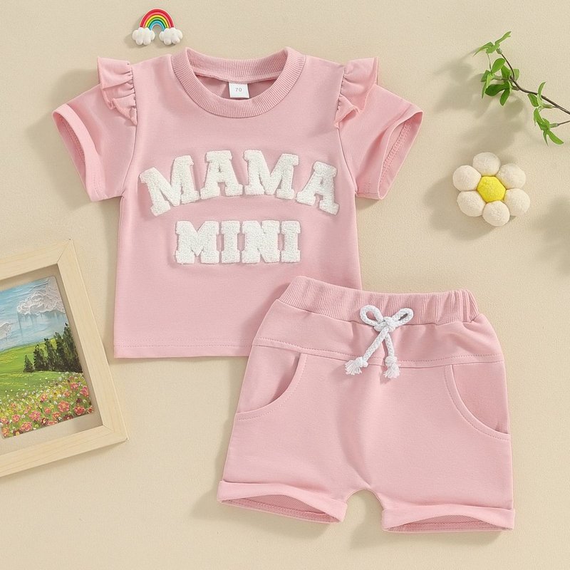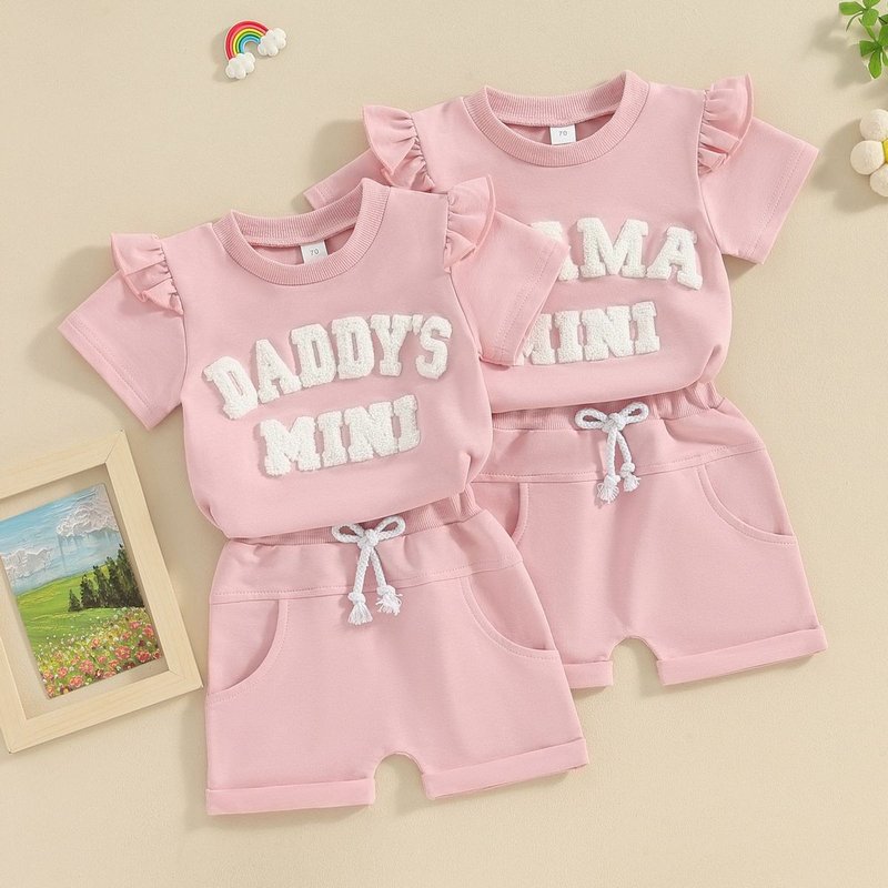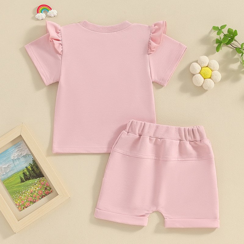Kids Baby Girls Casual Cute Alphabet Short Sleeve Sweatshirts Shorts Sets