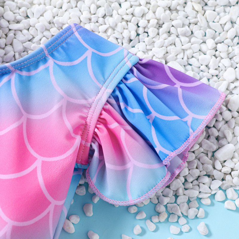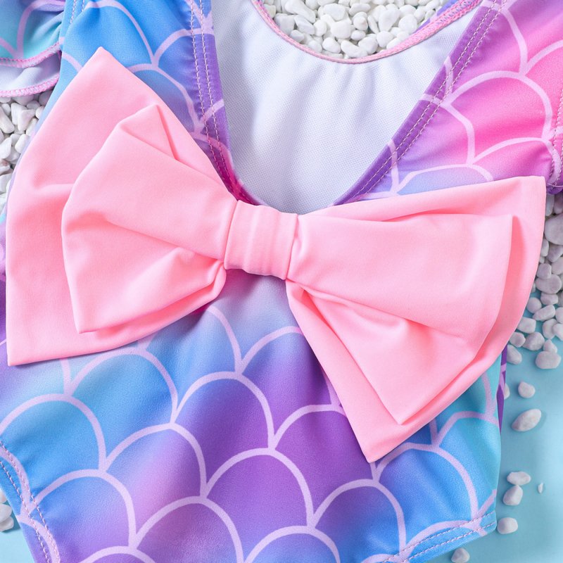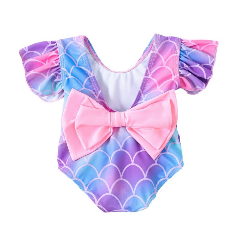 Kids Baby Girls Casual Cute Bow Fish Scale Print One Piece Swimwear