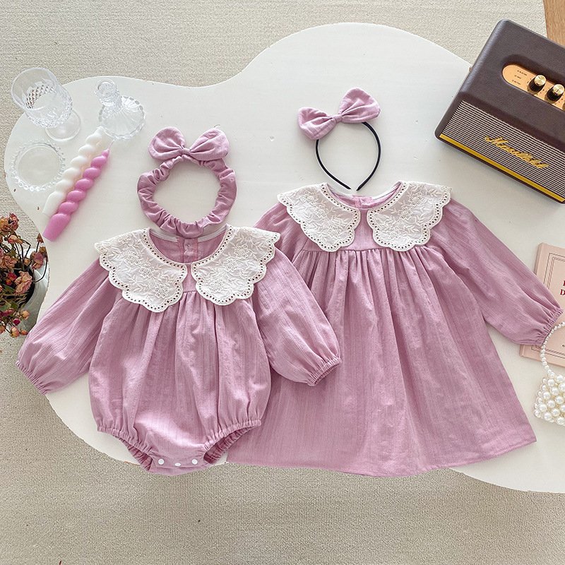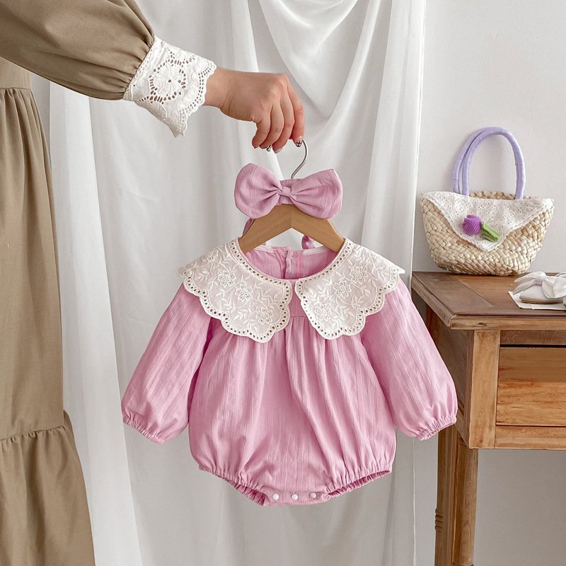 Kids Baby Girls Casual Cute Bow Long Sleeve Lapel Romper